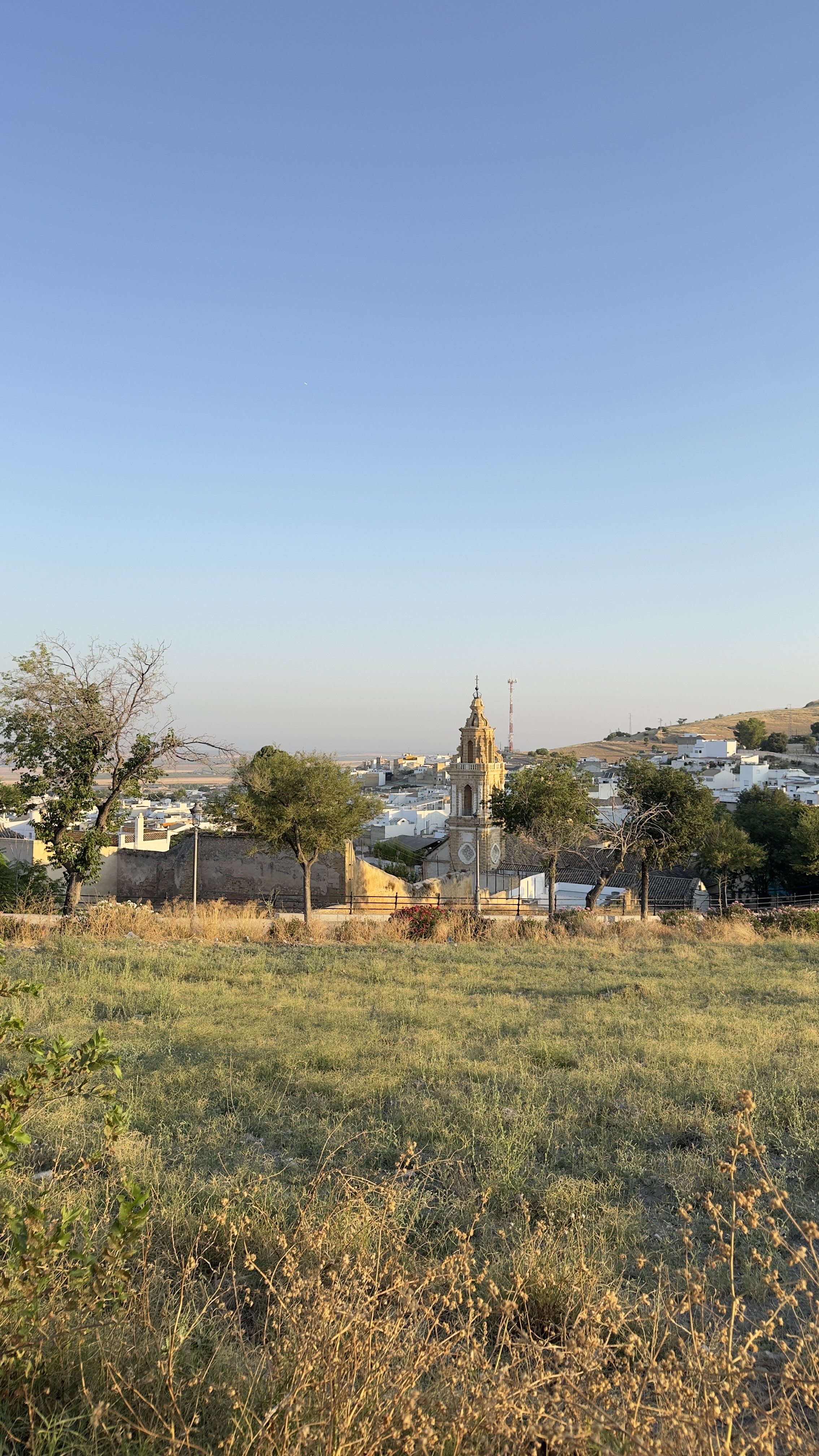 Alternative Text: A scenic view of Osuna, with white buildings set against a clear blue sky.