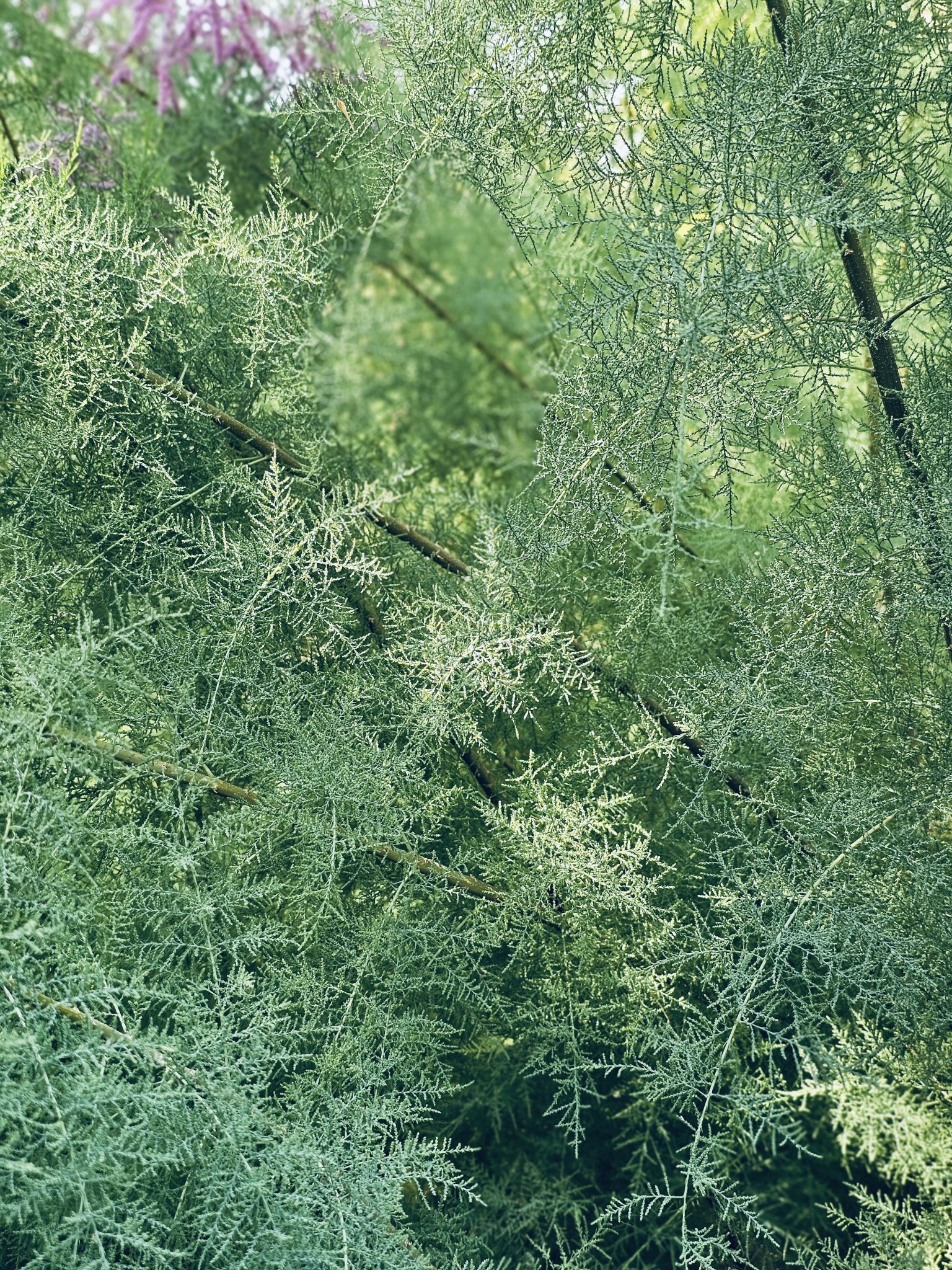 Alternative Text: Thin green branches of a Tamarix (Salt Cedar) tree form a delicate pattern. Captured at the Oregon Zoo, Portland.