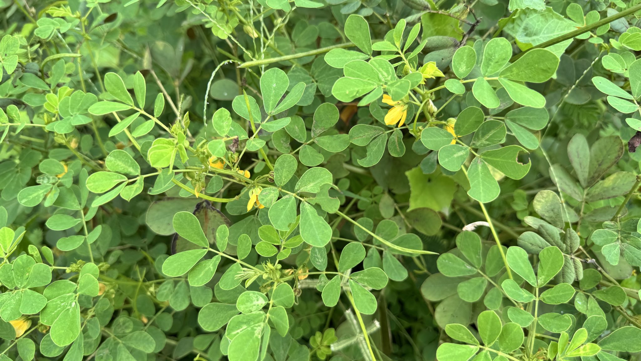 Alternative Text: Close-up of lush green foliage with small yellow flowers.