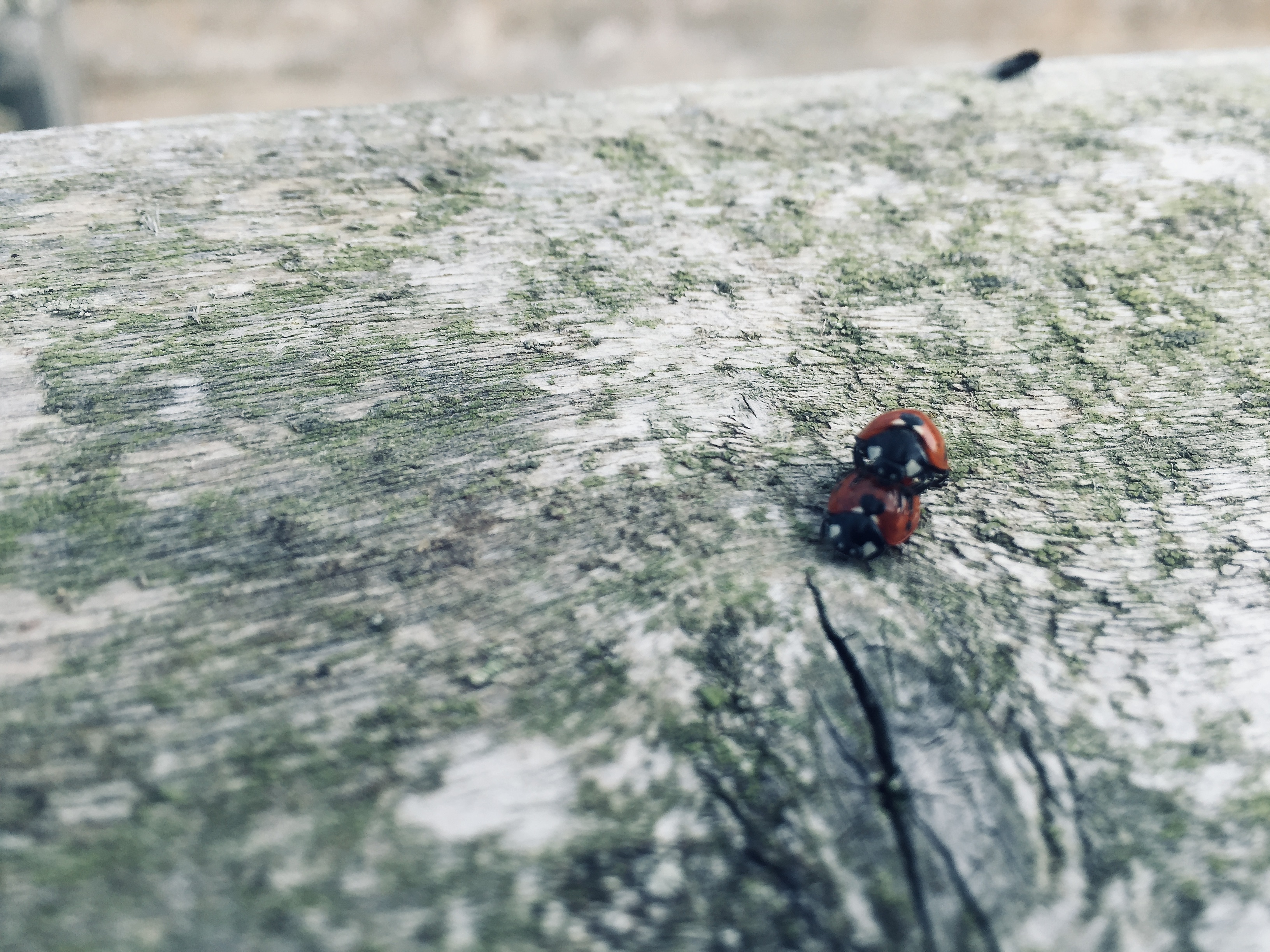 Alternative Text: Two ladybirds, one piggy backing on top of the other