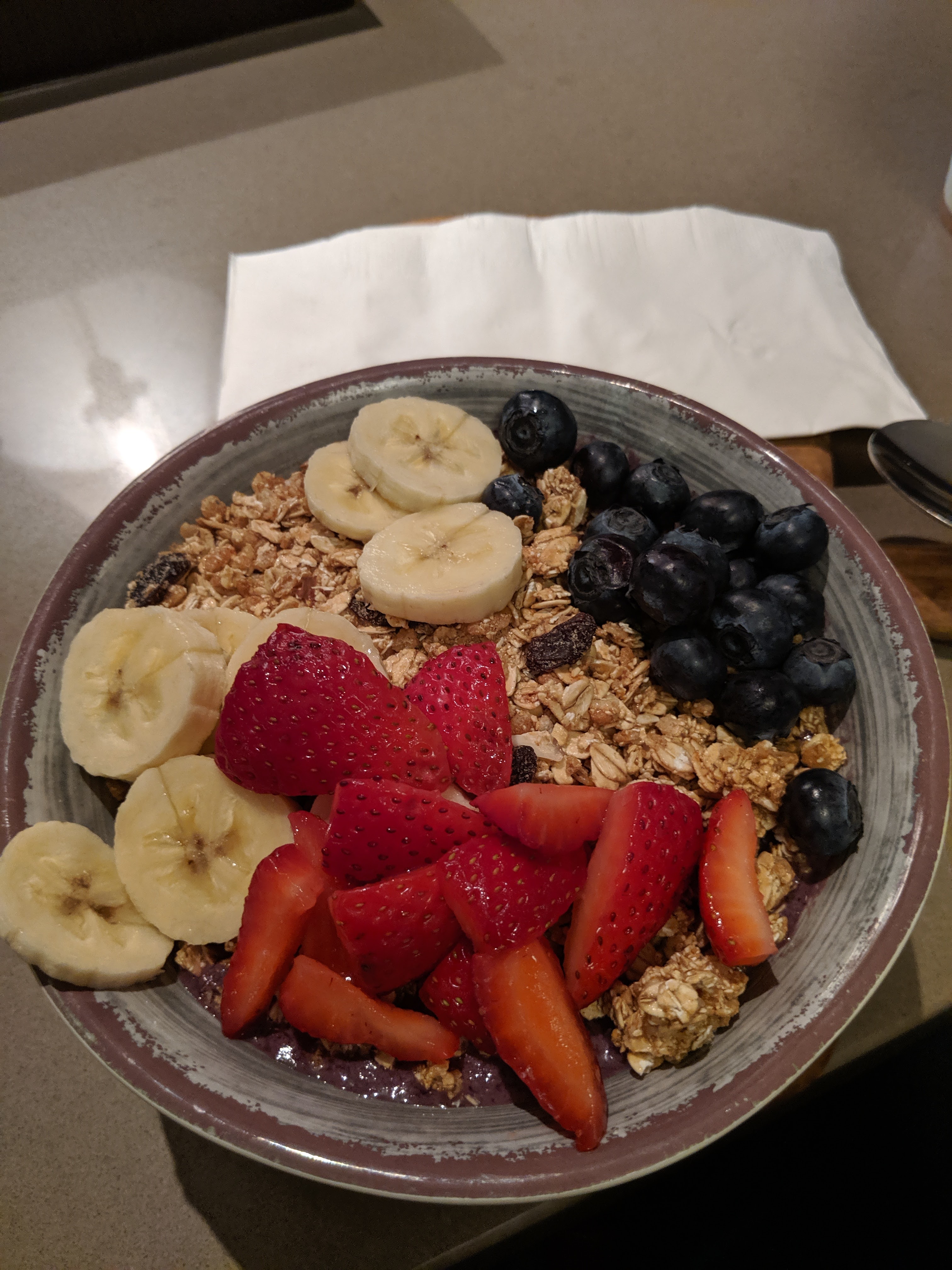 Alternative Text: A bowl of oatmeal with bananas and strawberries on top