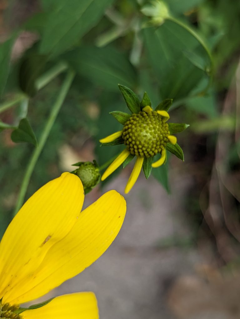 Alternative Text: Close up of small sunflower that is just starting to bloom.
