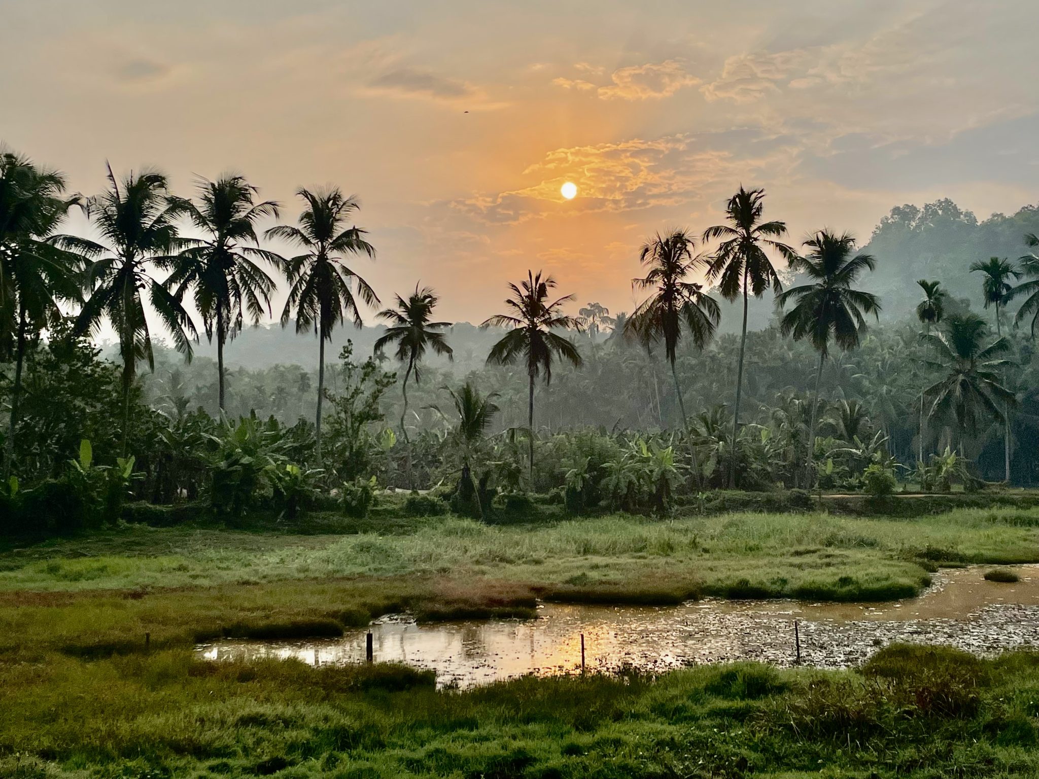 Alternative Text: Sunrise @ wet fields. From our morning walk. Perumanna, Kozhikode, Kerala.