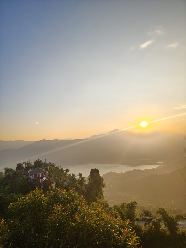 Alternative Text: A scenic view of a sunset over a mountainous landscape.