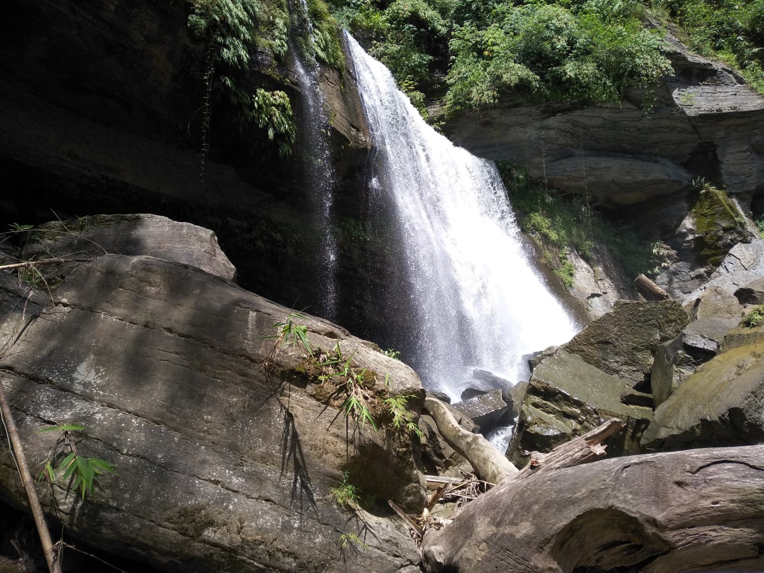 Alternative Text: A big and mighty waterfall named Tinaf Saitar is inside the deep Bandarban forest.