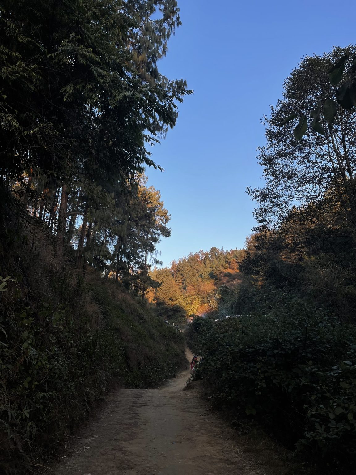 Alternative Text: A beautiful path with hills around and light sun on top