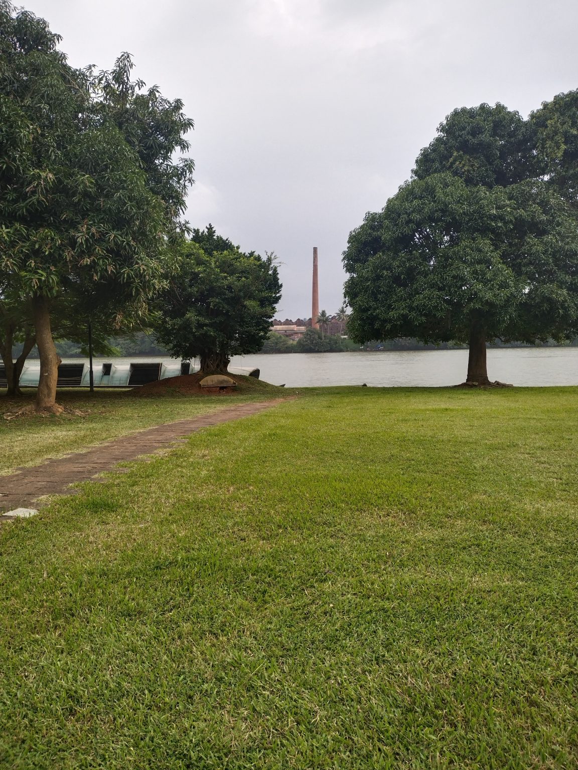 Alternative Text: A grassy area with a stone pathway leading toward a body of water.