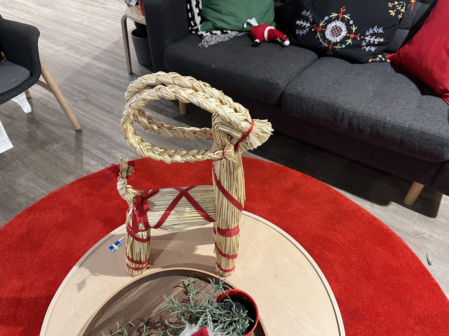 Alternative Text: Nordic deer Christmas decoration made of straw and threaded together by hand.