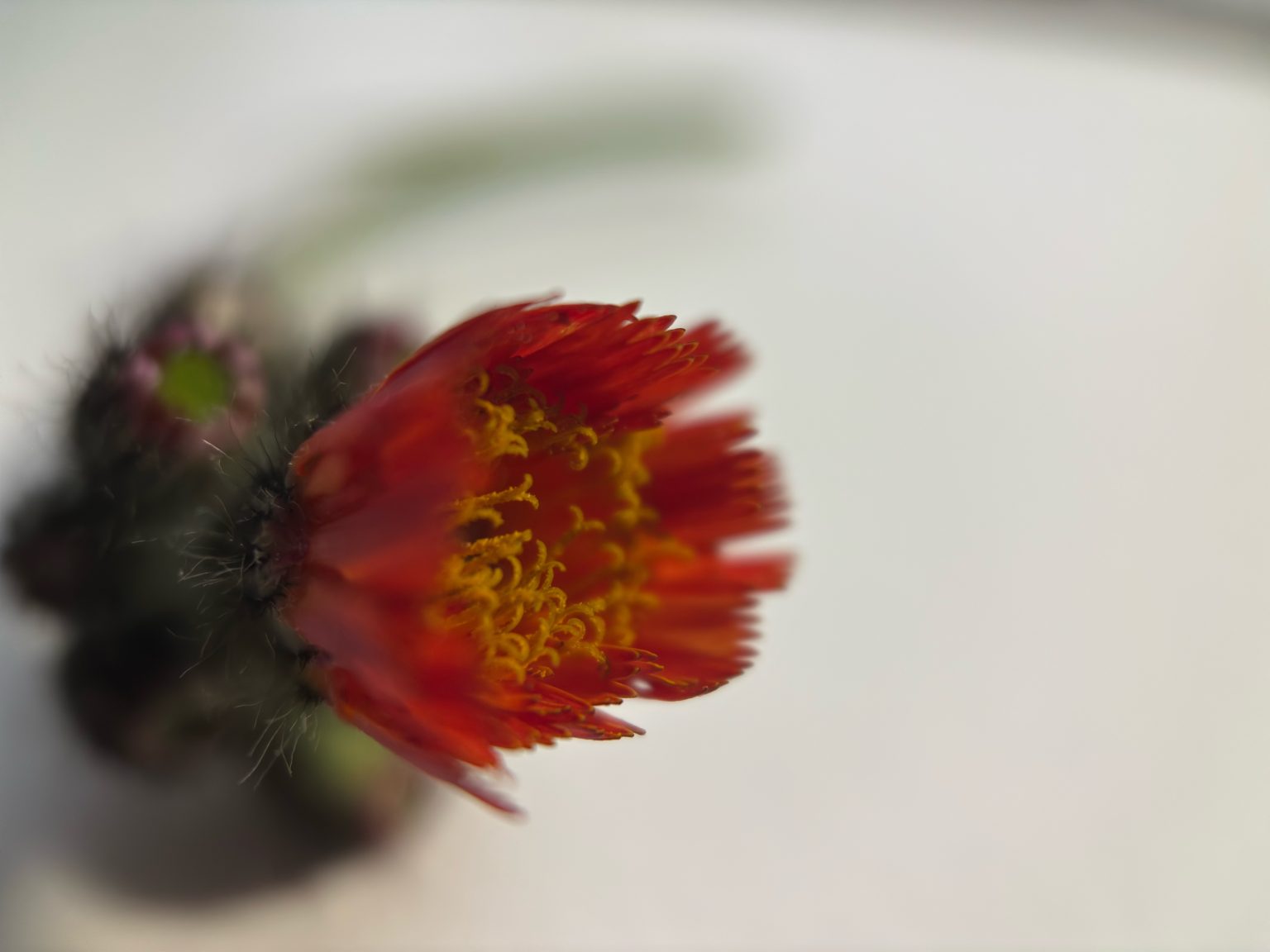 Alternative Text: Closeup of a Hawkweed blossom, also known as Indian Paint Brush.