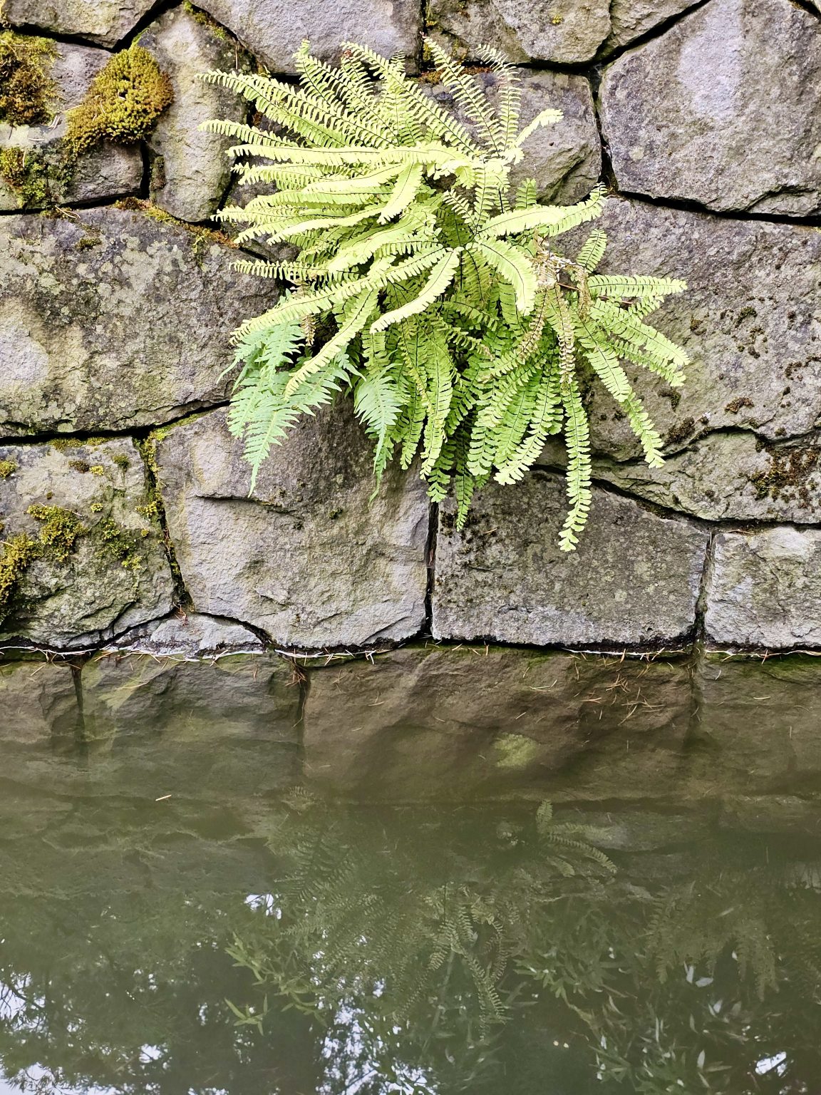 Alternative Text: A close-up view of a water droplet on a bright green leaf. The photo captures the calm beauty of nature after a rain. Taken at Portland Japanese Garden, Oregon.