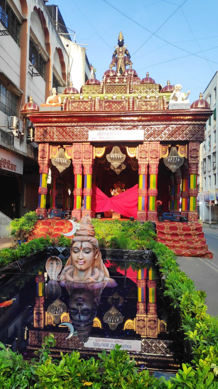 Alternative Text: Ganesh Temple Decoration (scene of Mahadev and Vitthal )