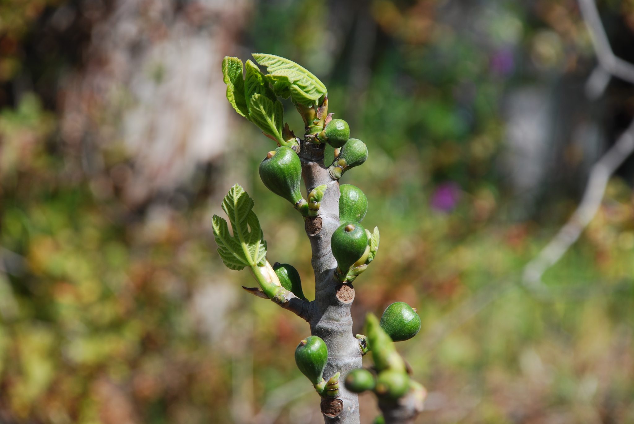 Alternative Text: Detail of some still unripe figs on a fig branch in the Sicilian countryside.