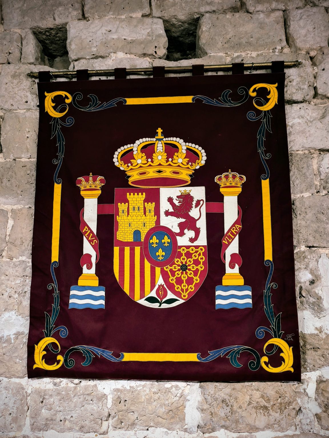 Alternative Text: Coat of arms of Spain located at the Castle of Peñafiel, Valladolid, Spain.