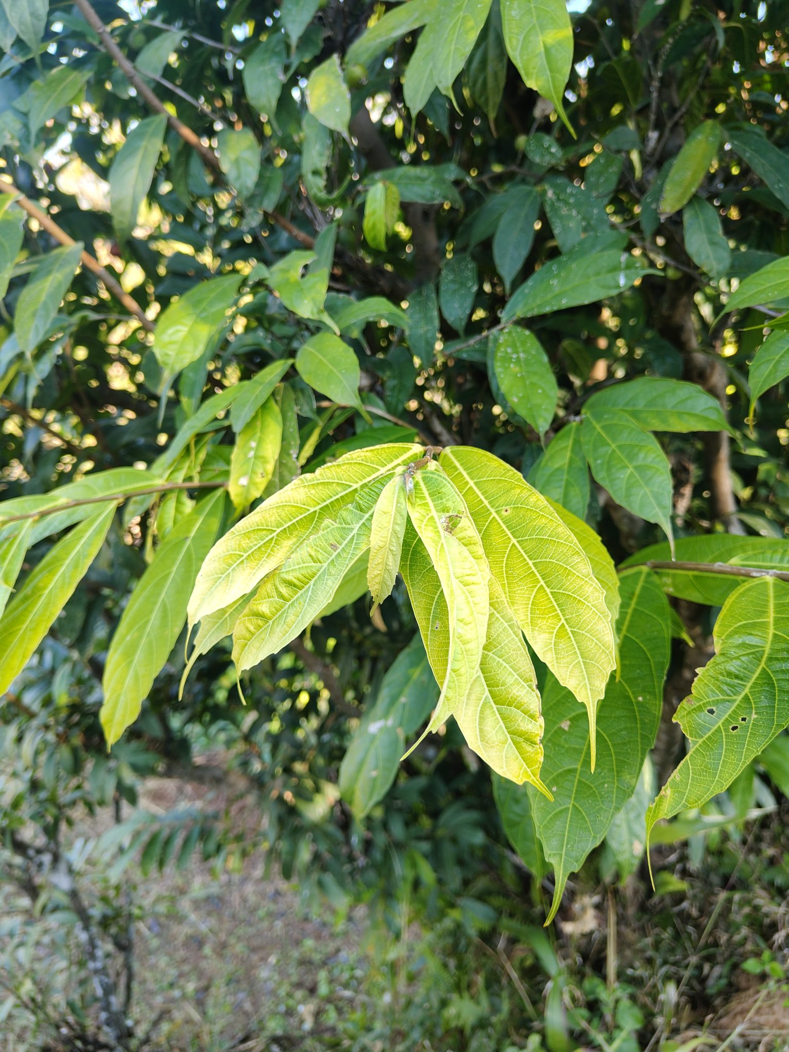 Alternative Text: A close-up view of green leaves on a tree branch, with a mix of bright and darker green hues.