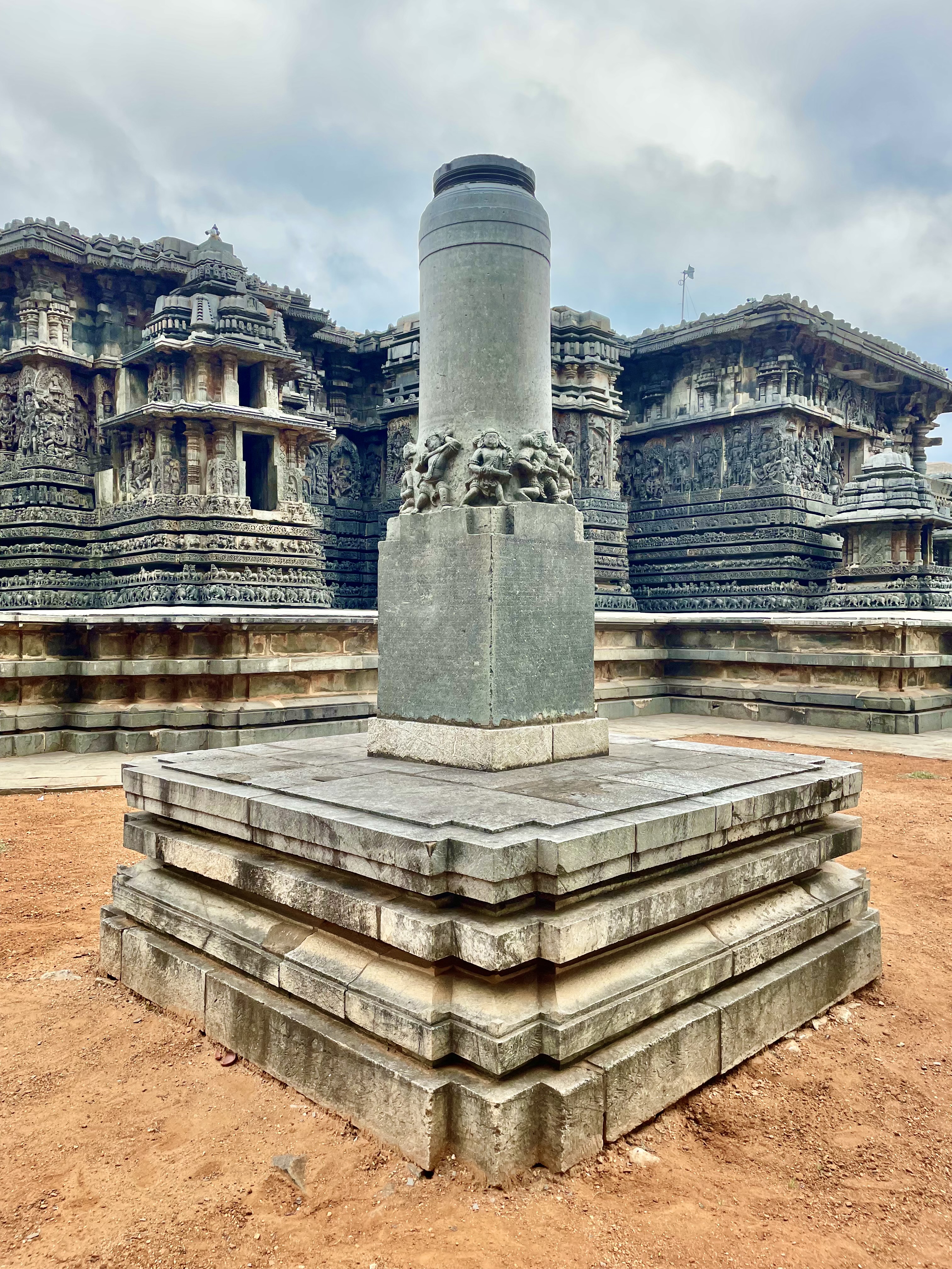 Alternative Text: A pillar with manuscripts, a 12 century monument. From Hoysaleshwara Temple Complex, Halebeedu, Hassan District, Karnataka.