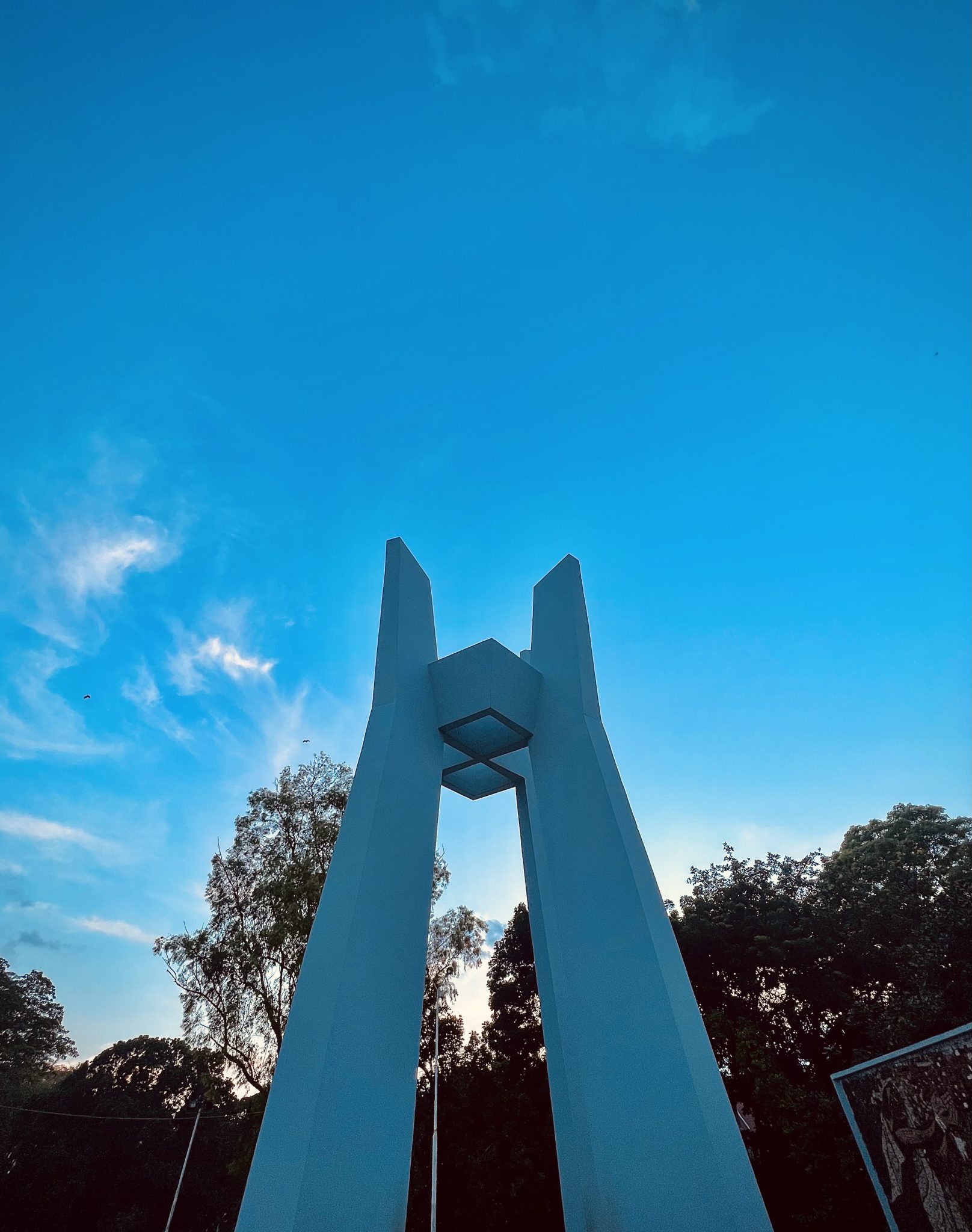 Alternative Text: Abstract scupture outdoors against a blue sky