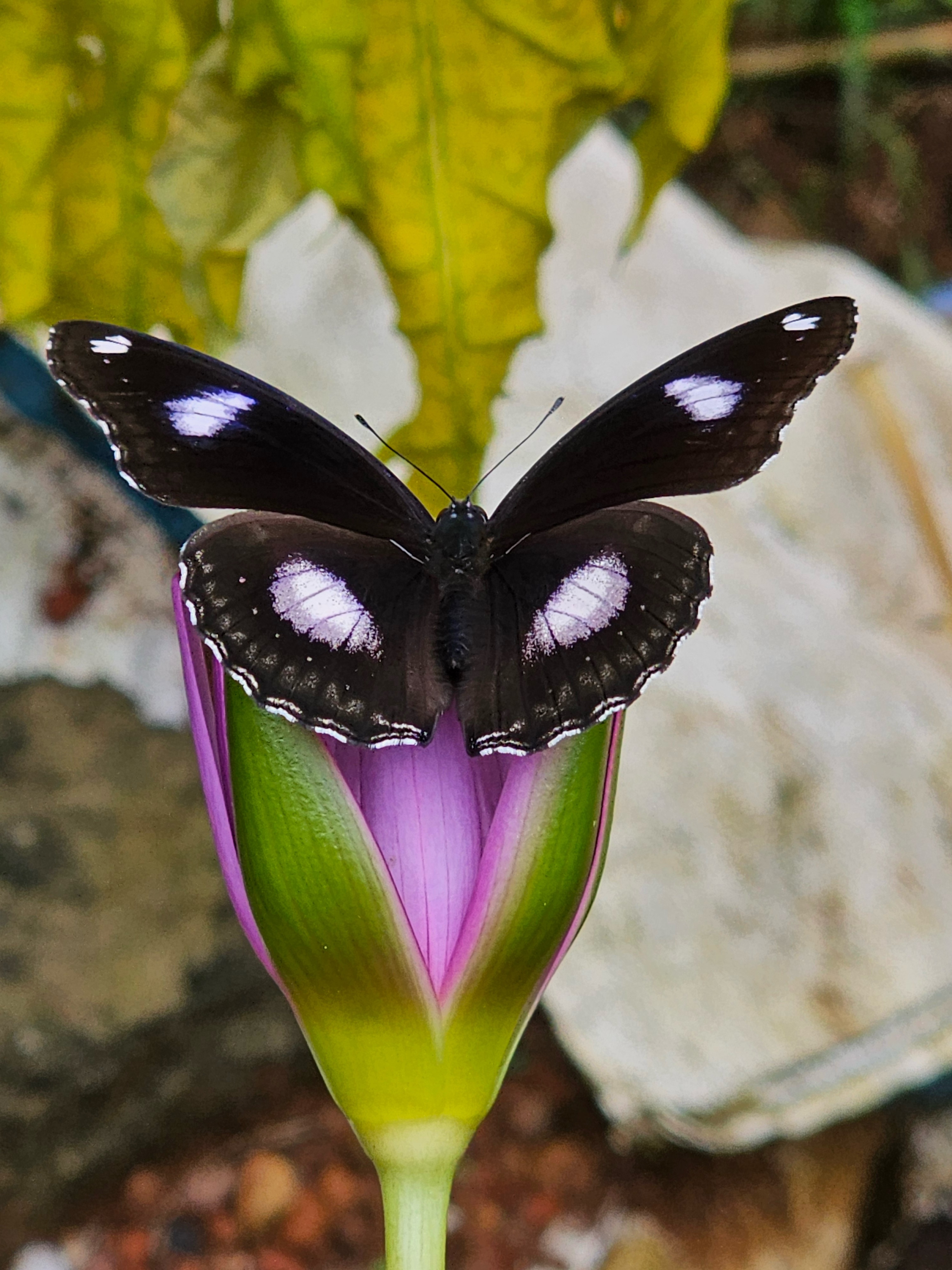 Alternative Text: Close up of a Blue moon butterfly sitting in the water lily flower. From Kozhikode, Kerala.