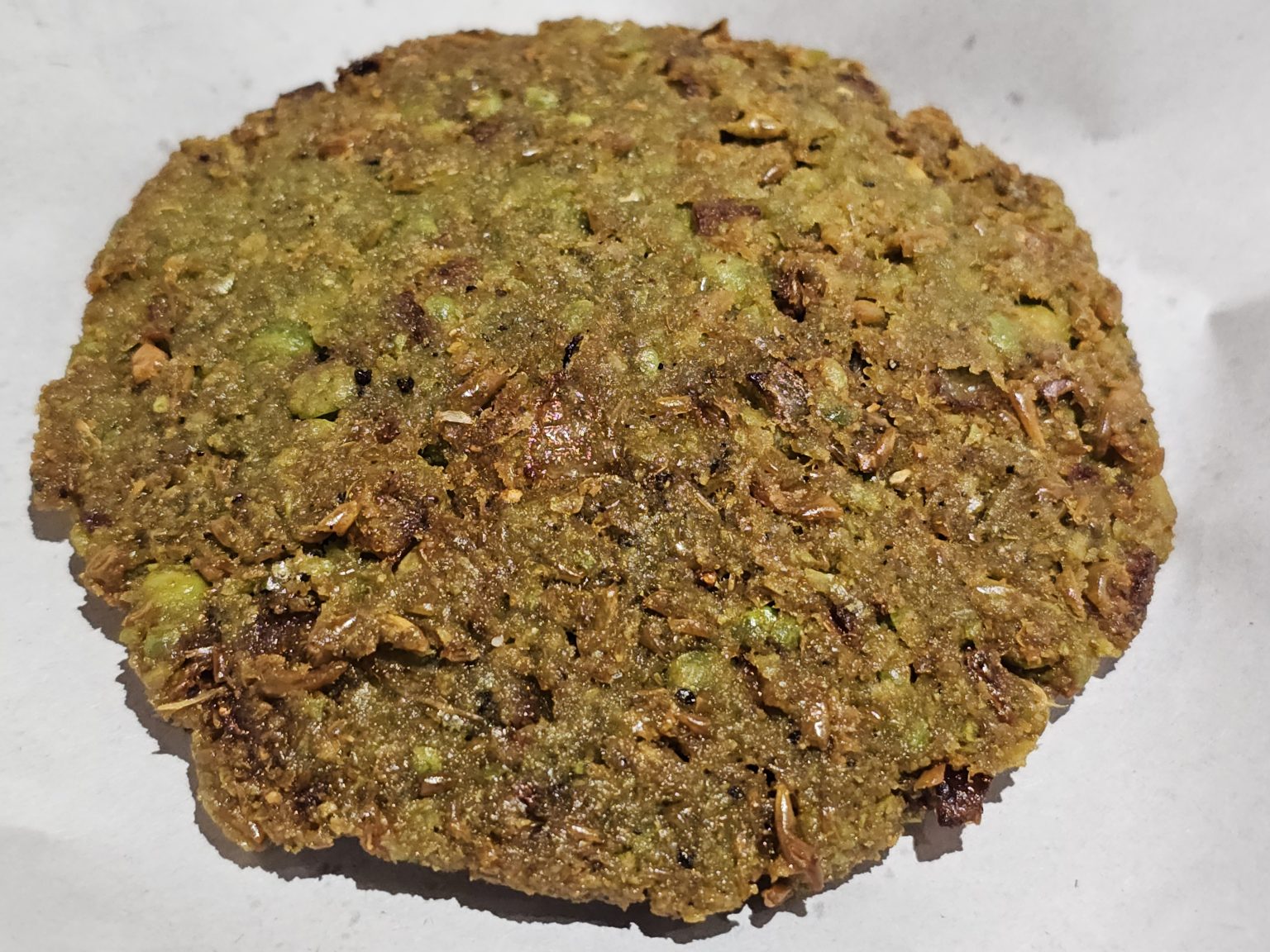 Alternative Text: Green peas vada (an Indian snack) placed in a butter paper