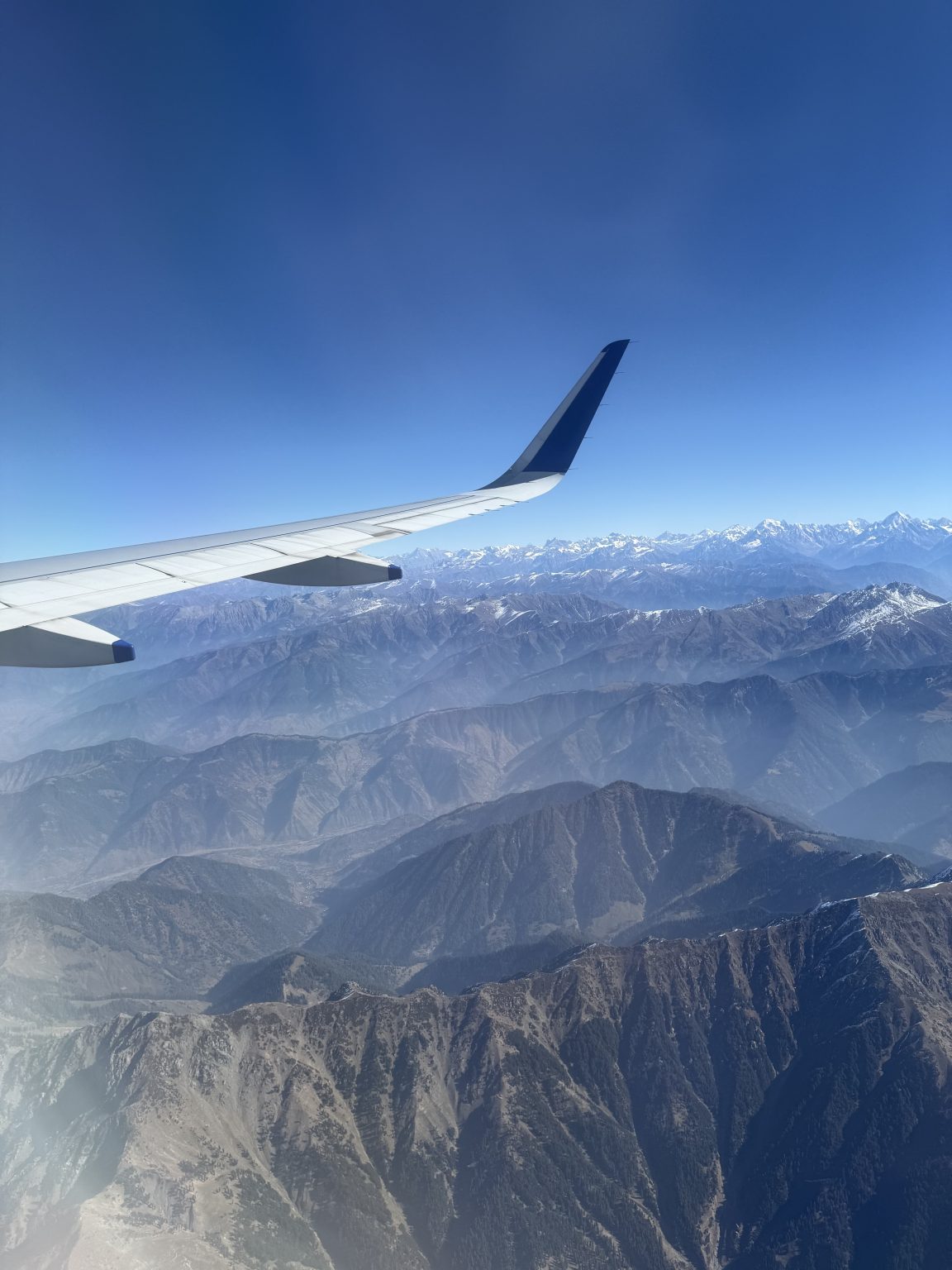 Alternative Text: A flight wing in the sky with mountains in the background