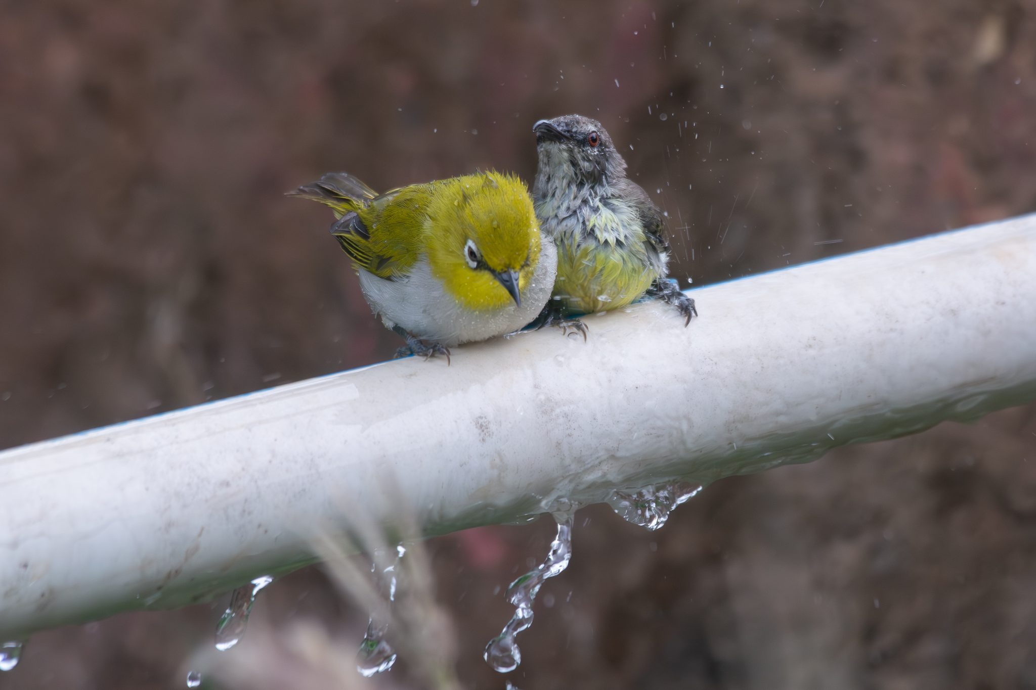 Alternative Text: Oriental White Eye and Sunbird enjoying the bath.
