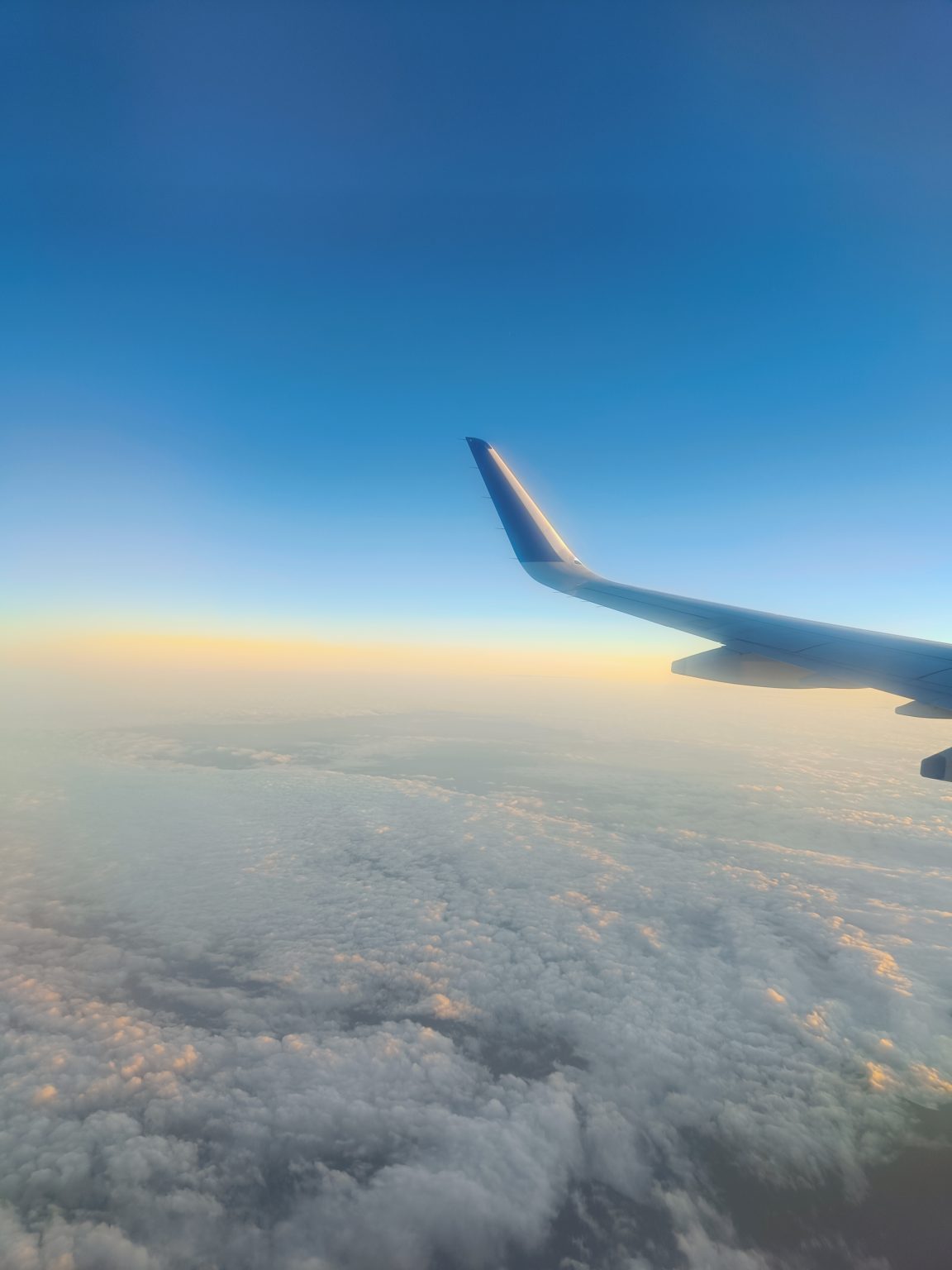 Alternative Text: Looking on a carpet of clouds from the airplane.