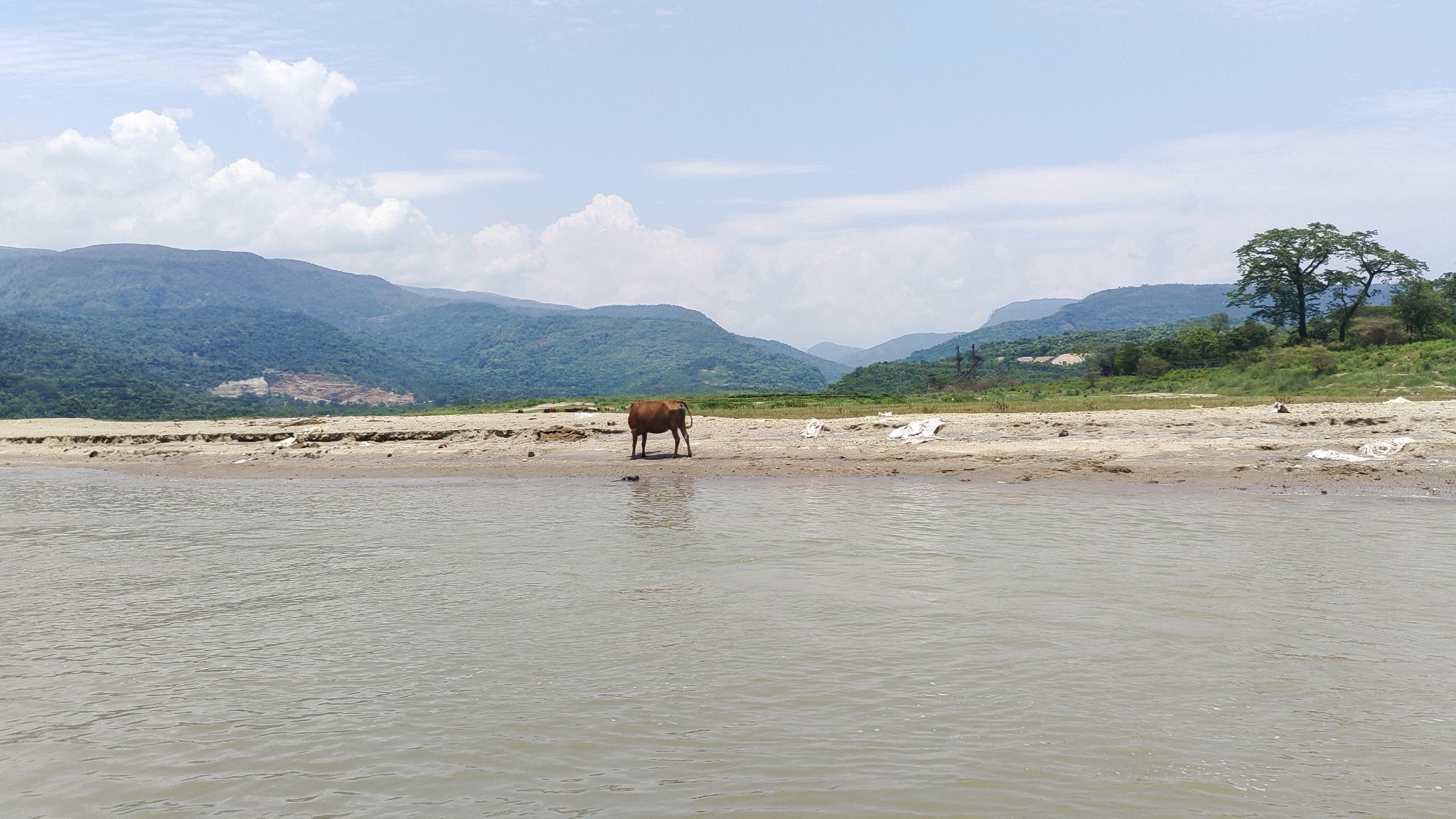 Alternative Text: A cow standing in water near a river, enjoying a refreshing moment in nature’s embrace.