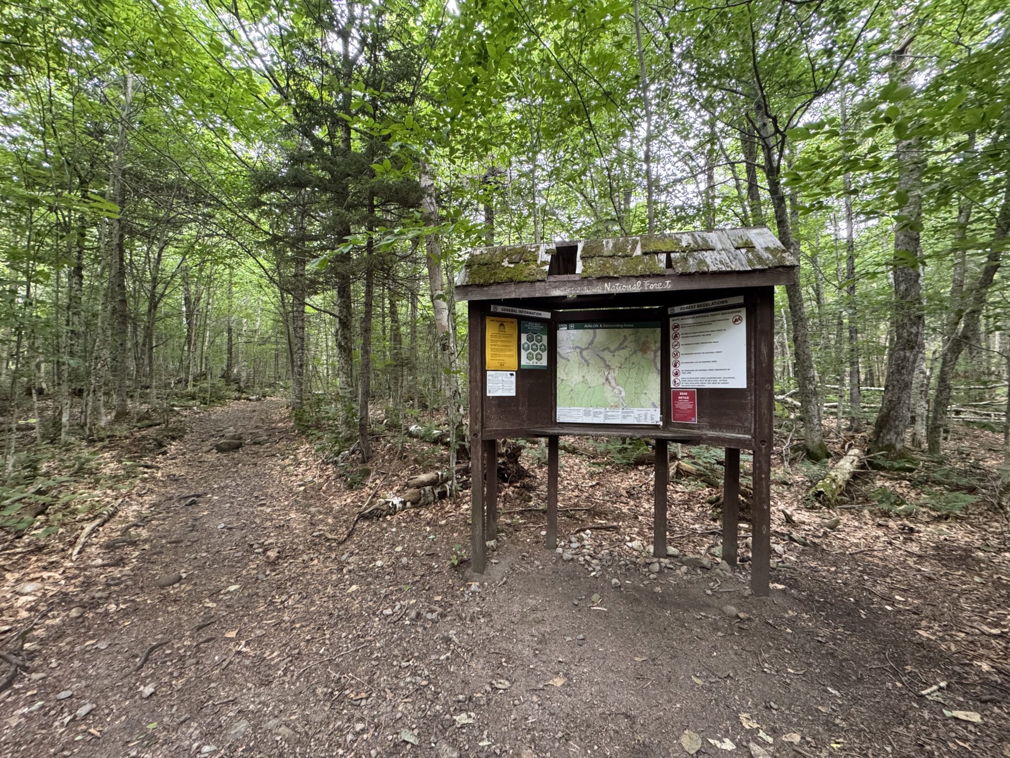 Alternative Text: A trailhead kiosk at the beginning of the trail on Mount Willard in Hart’s Location, New Hampshire.
