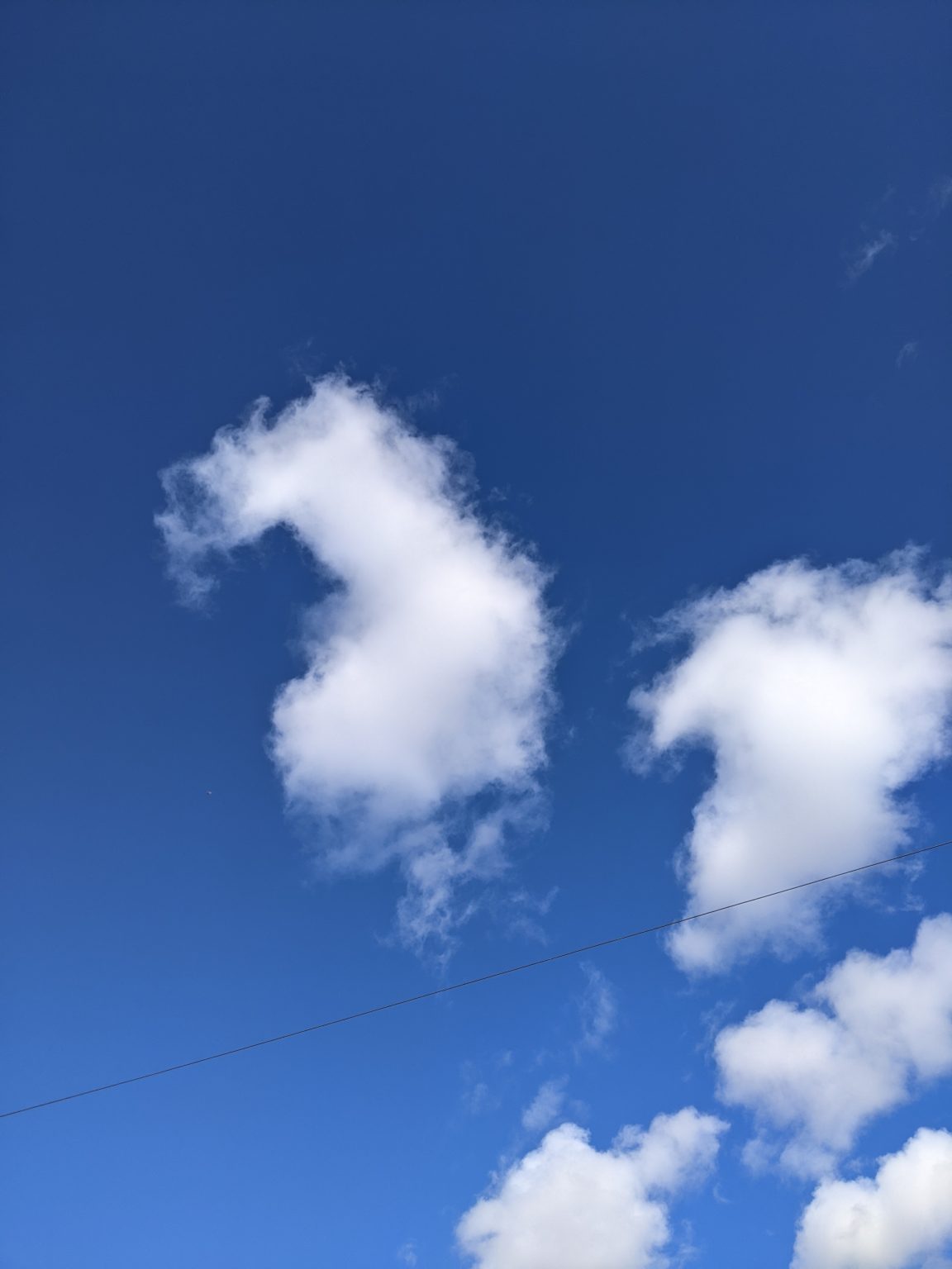 Alternative Text: A clear blue sky with fluffy white clouds drifting peacefully overhead on a sunny day