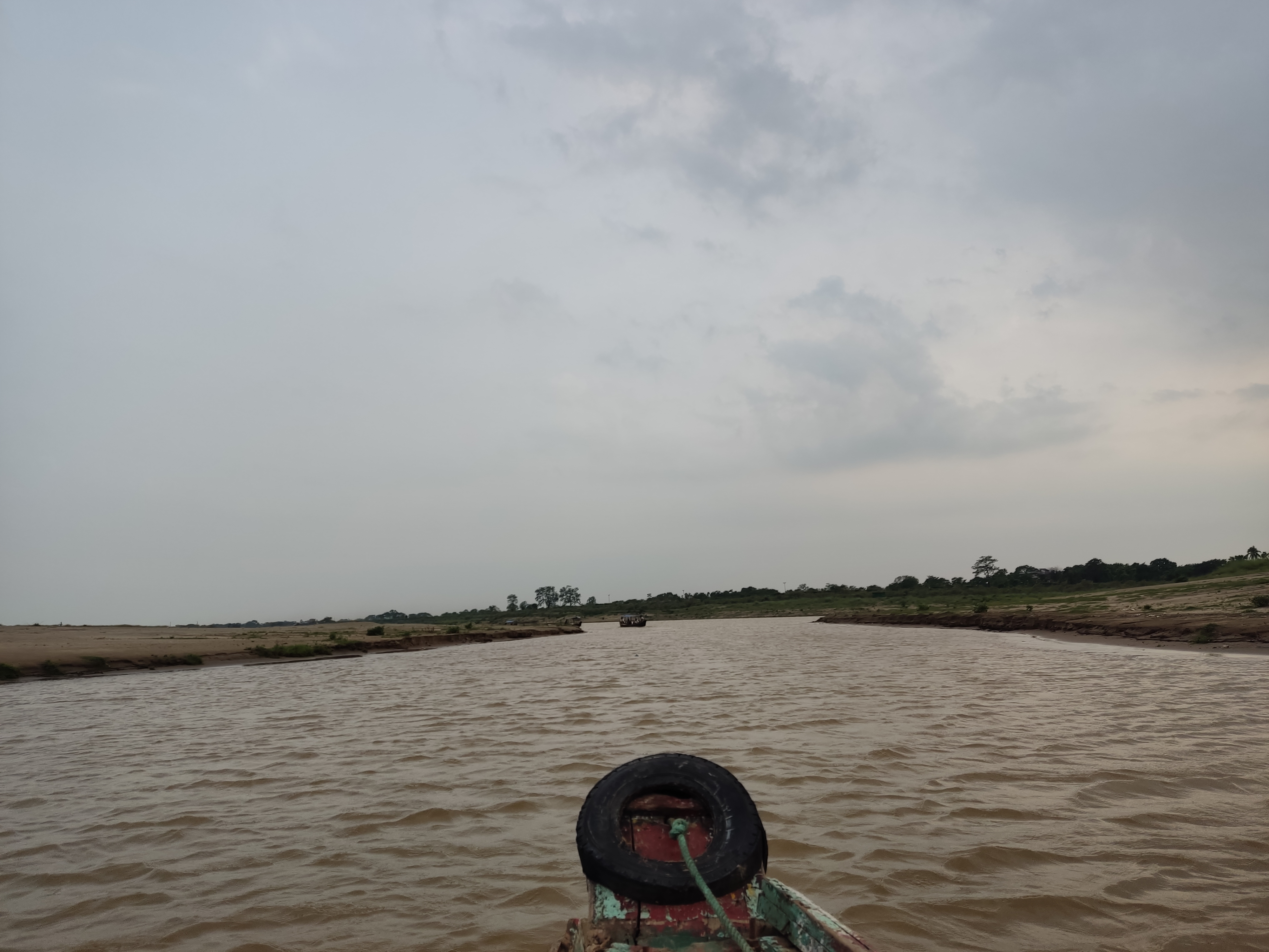 Alternative Text: A river with vibrant waves in Sylhet, Bangladesh with a cloudy and smoky sky