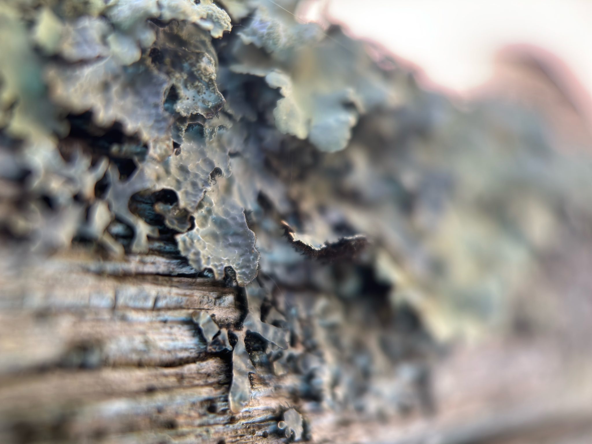 Alternative Text: Closeup of leaf lichen on wood.