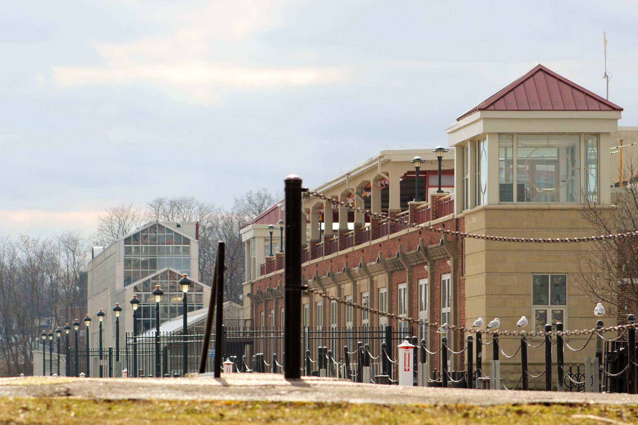 Alternative Text: Port of Rochester as seen from the Genesee River. The port is at the mouth of the Genesee as it opens into Lake Ontario. Tags: Port of Rochester, Rochester, New York, USA, Genesee River, Lake Ontario