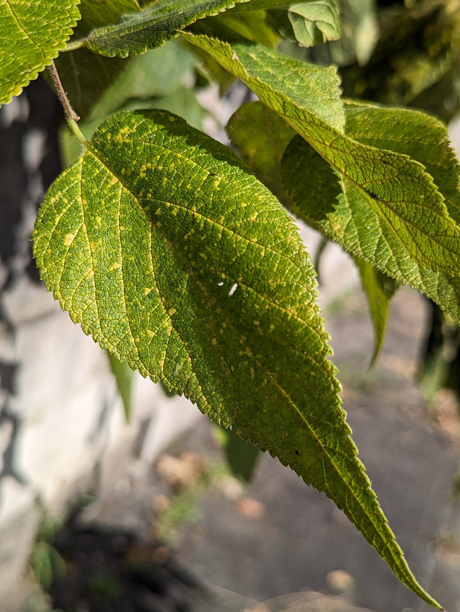 Alternative Text: Close up of green leaves that are starting to get waxy and dry