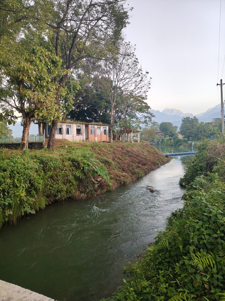 Alternative Text: A serene landscape featuring a gently flowing river bordered by lush greenery.
