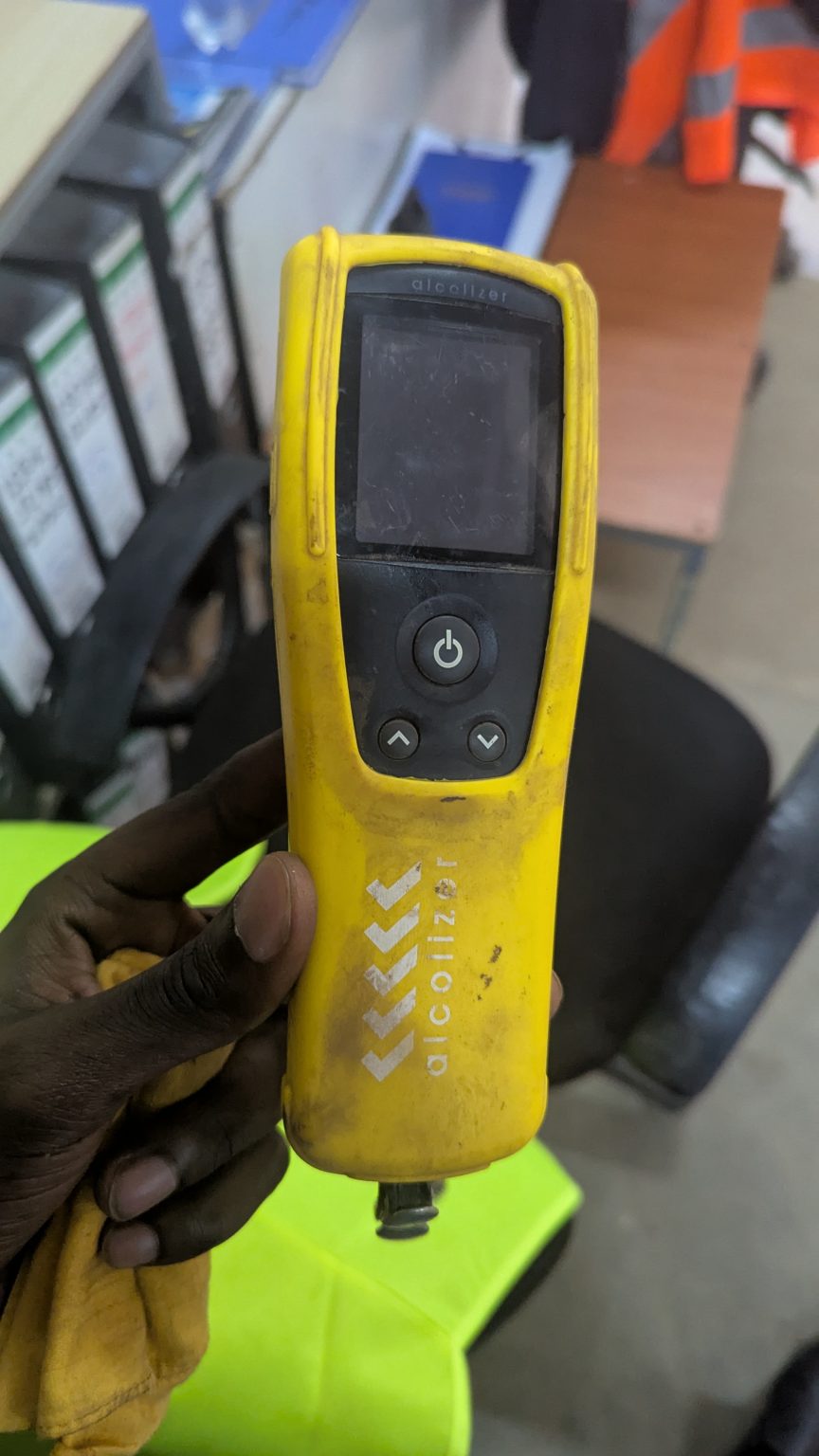 Alternative Text: A person is holding a yellow alcohol breathalyzer device.