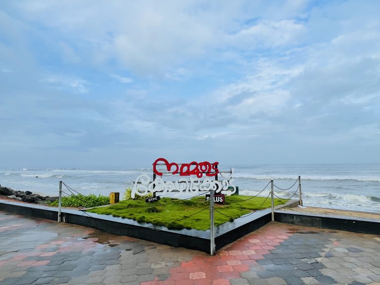 Alternative Text: A selfie point of a main beach in Kozhikode, Kerala, India written in Malyalam
