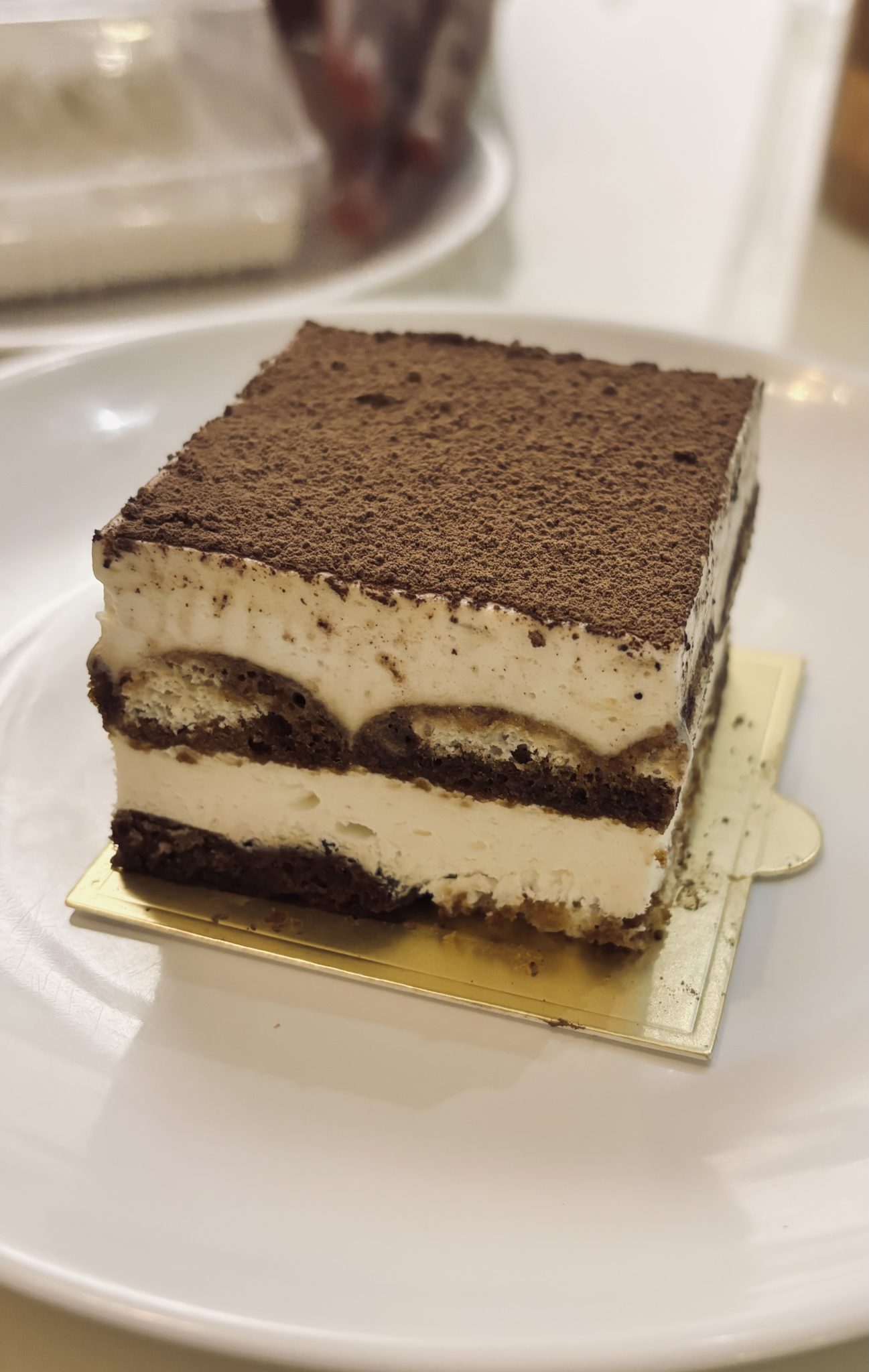 Alternative Text: A decadent piece of chocolate cake displayed on a plate, showcasing its moist texture and creamy frosting.