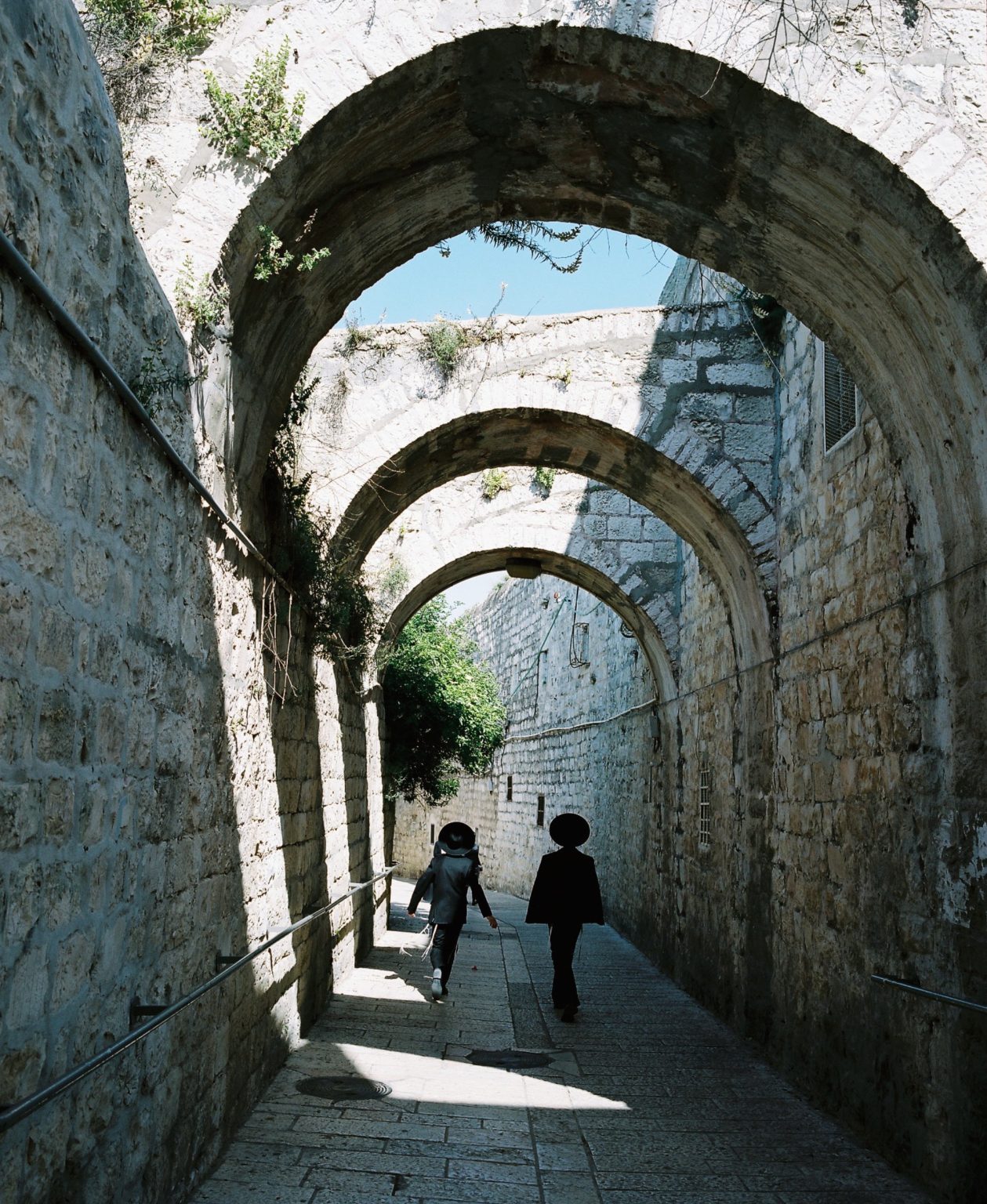 Alternative Text: Two kids on the arch-covered St. James Street in Jerusalem.