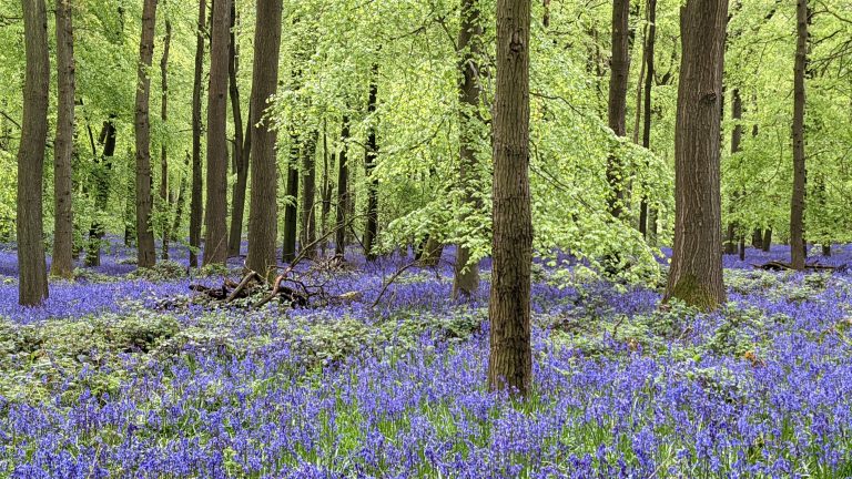 Alternative Text: A field of bluebells in Hertfordshire
