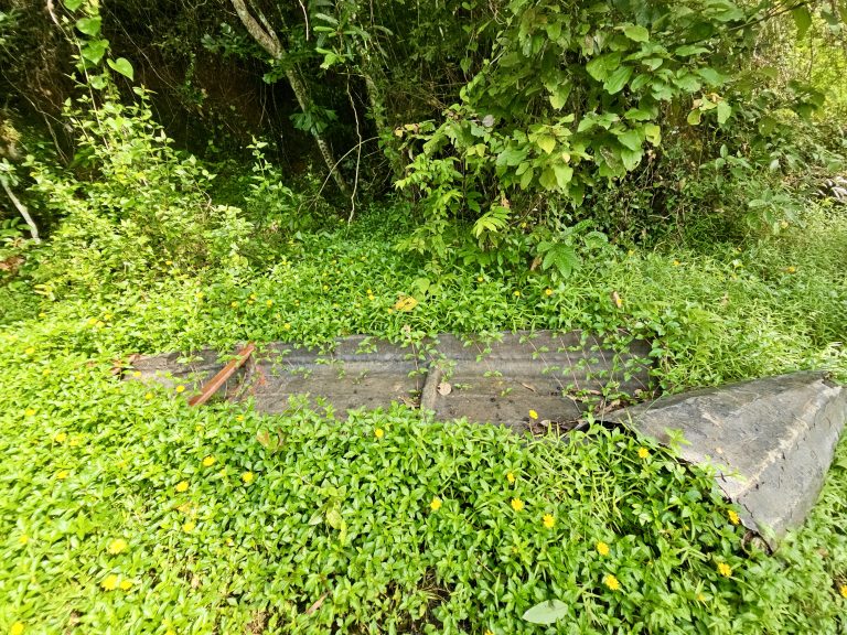 Alternative Text: An old wooden boat fades into lush greenery as nature reclaims its space. Captured in Oorkadavu, Kozhikode.