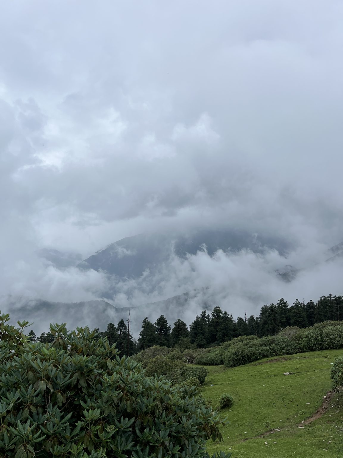 Alternative Text: A beautiful portrait of a lush green valley beneath the clouds.