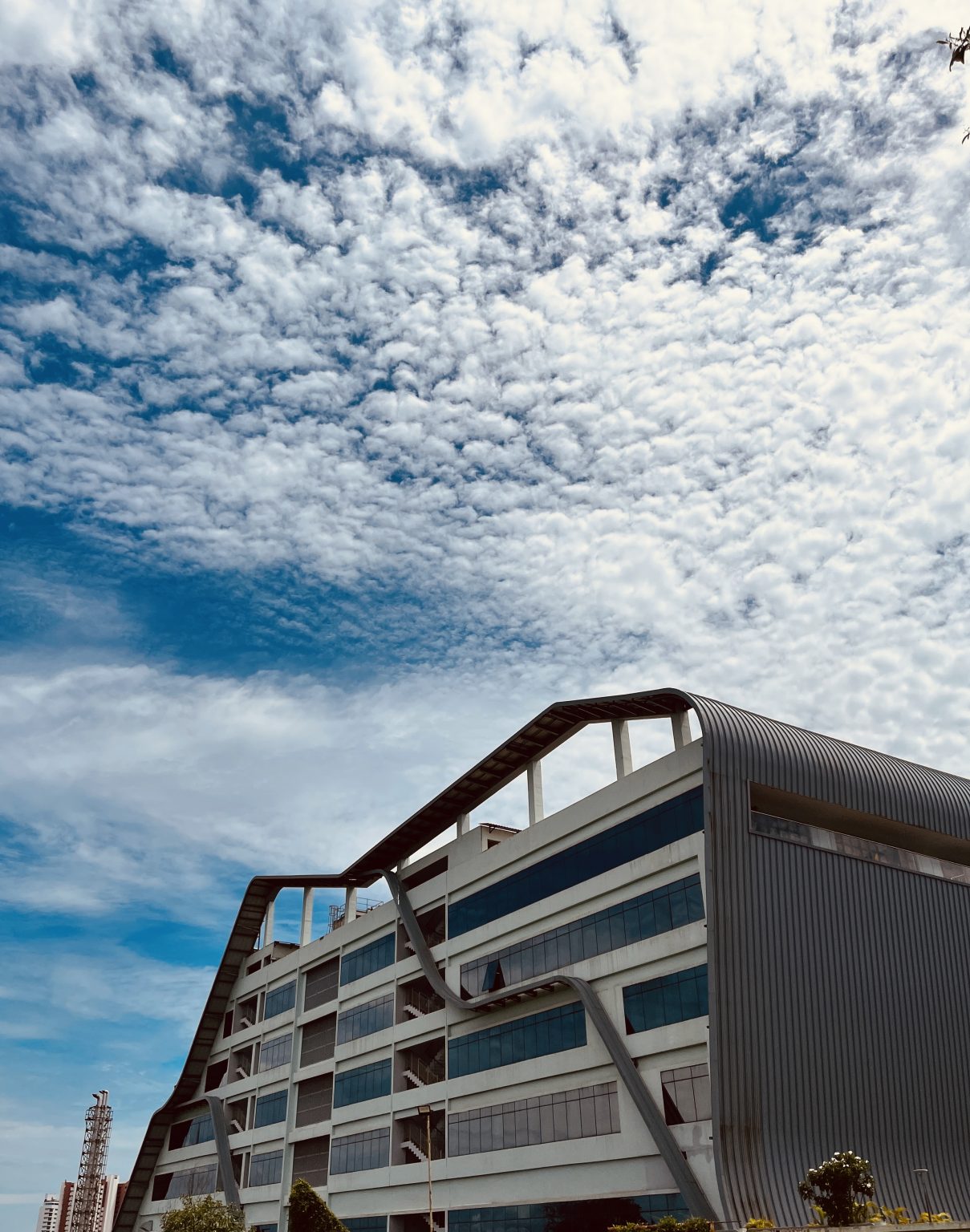 Alternative Text: A cloudy sky above a modern building.
