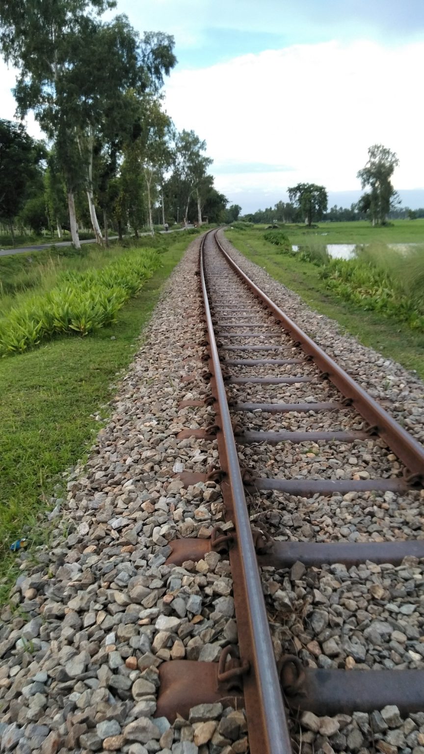 Alternative Text: A rail track under the open sky in the green field