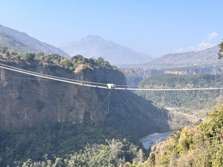 Alternative Text: Soaring heights: Witness the world’s second-highest bungee jump near Kusma-Baglung with the Kaligandaki River below!