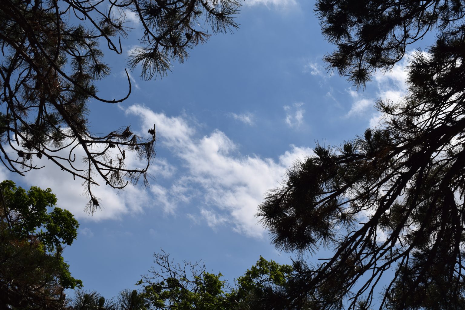 Alternative Text: Blue sky with the trees around.