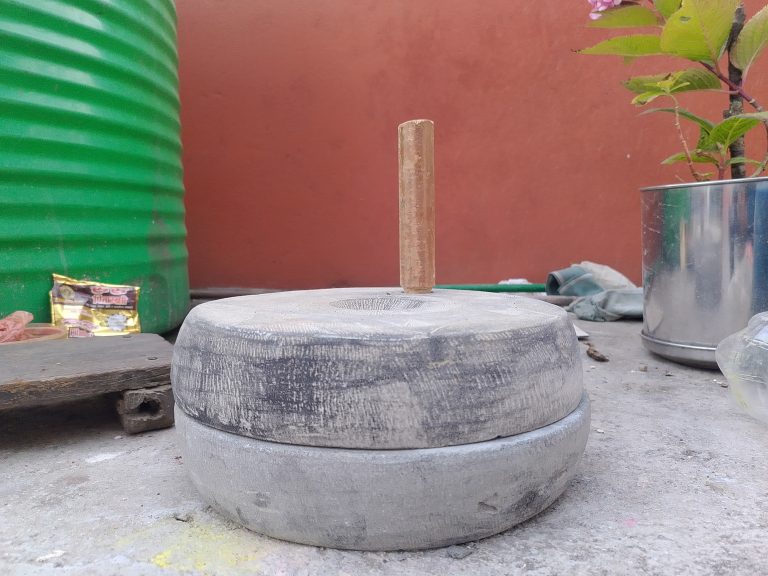 Alternative Text: A traditional equipment called Janto, used for many purposes such as grinding grains and spices.