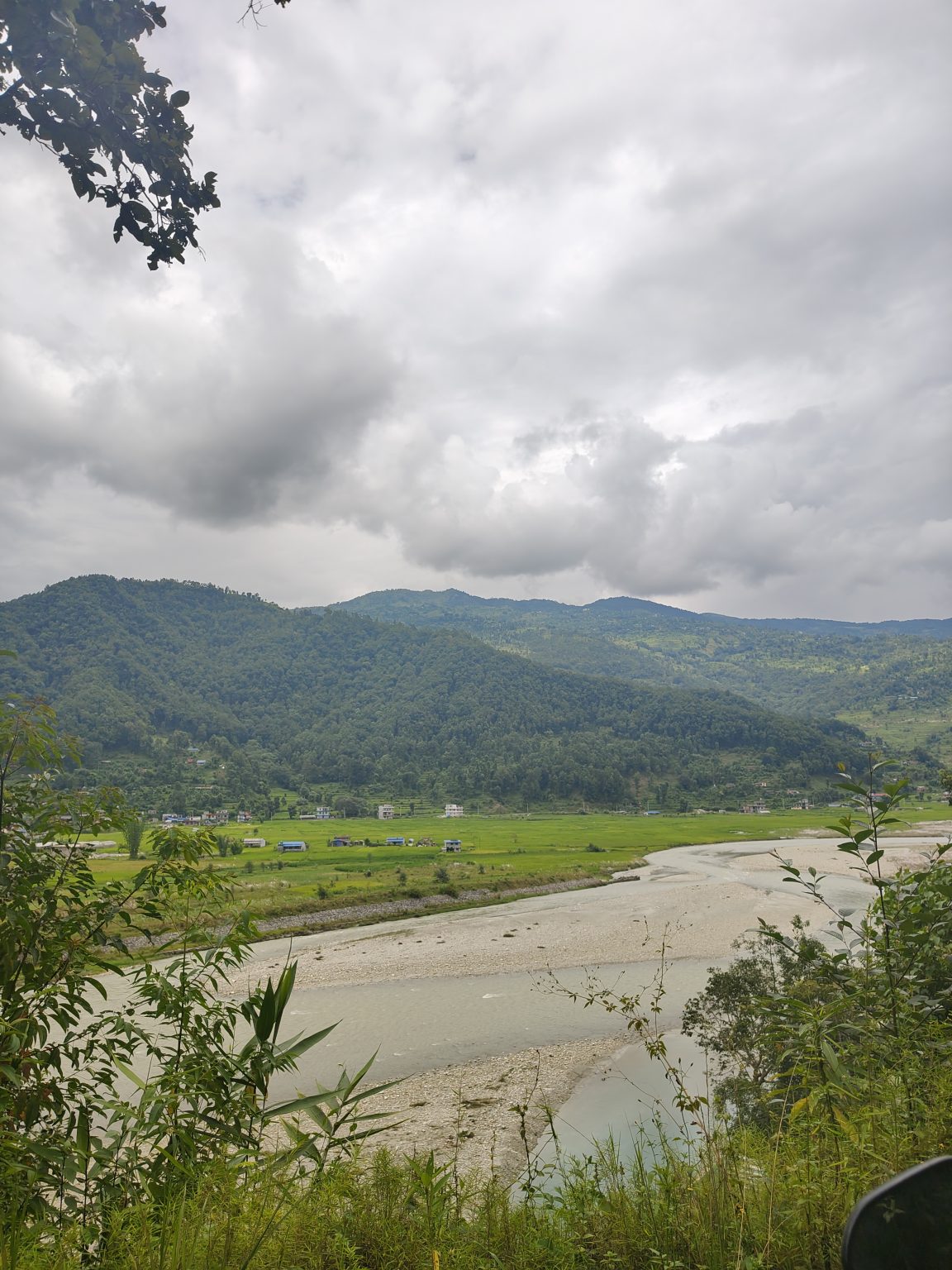 Alternative Text: A scenic view of a valley featuring rolling green hills under a cloudy sky.