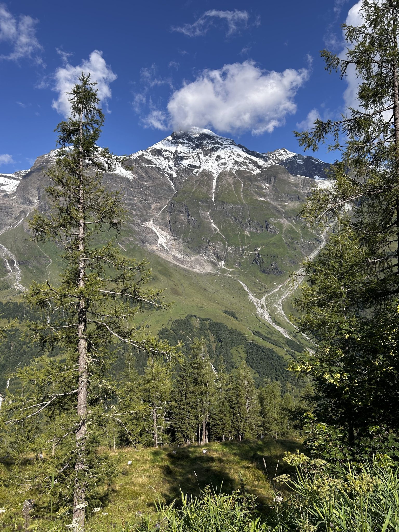 Alternative Text: A breathtaking alpine view with towering snow-capped peaks, rolling green valleys, and crisp mountain air, capturing the serene beauty of high-altitude landscapes.