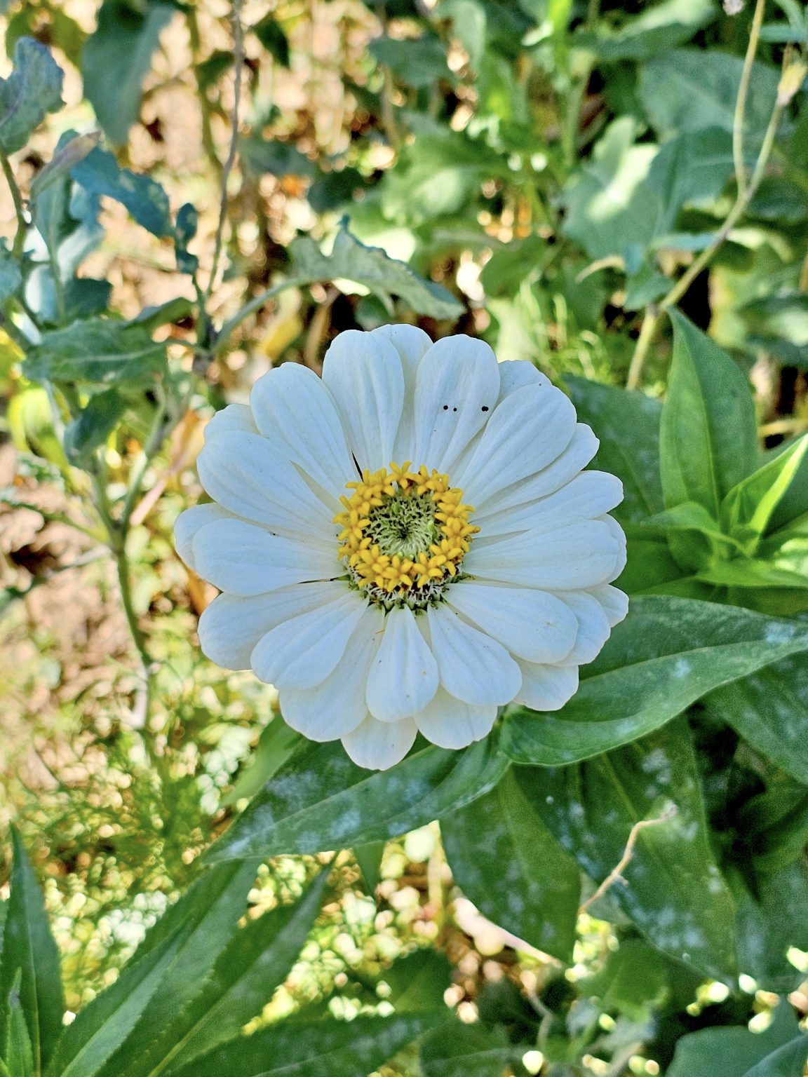 Alternative Text: A white flower. It is a variant of common zinnia. From Washington DC, United States
