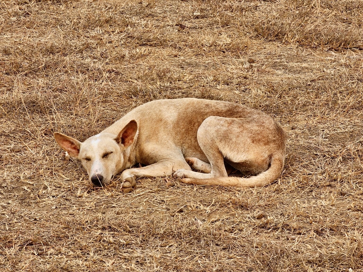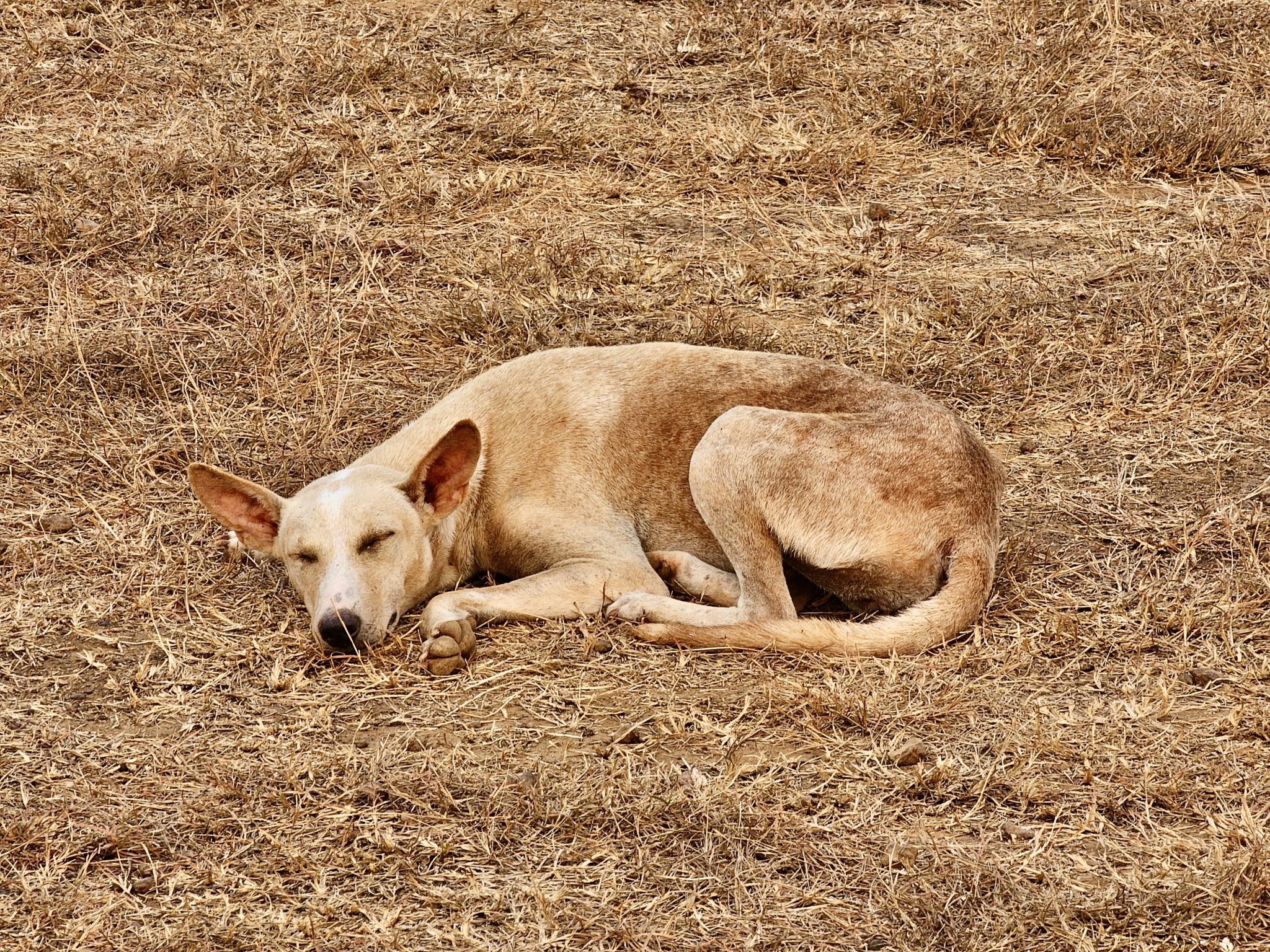 Alternative Text: A street dog is sleeping under the evening sun. From Pantheerankav, Kozhikode, Kerala.
