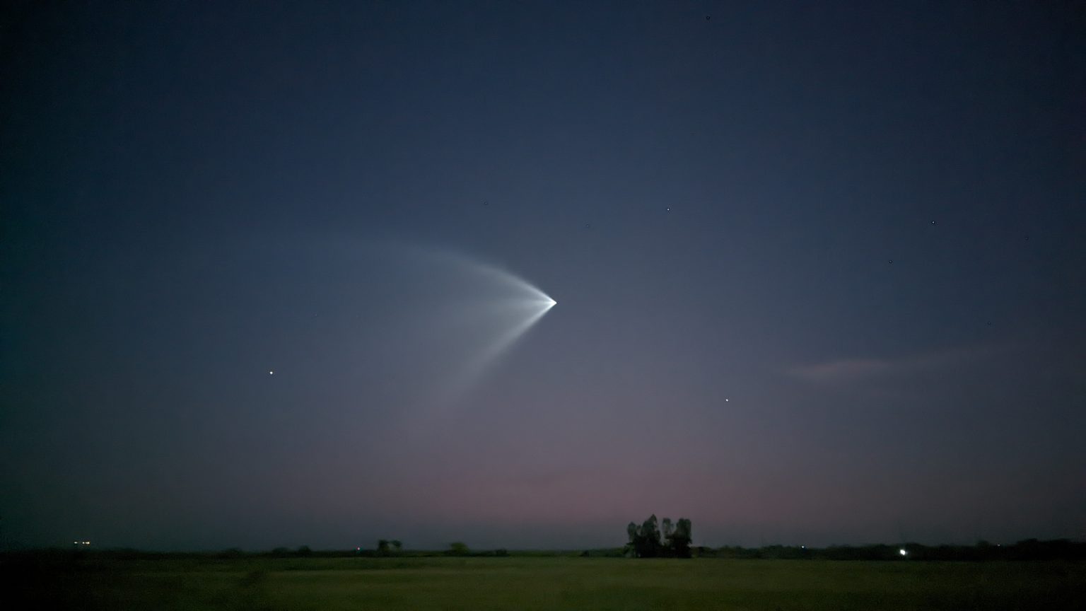 Alternative Text: It’s a bird! It’s a plane! It’s comet or a meteor! No, it’s a rocket launched from the Indian territory, shining through the pre-dawn November sky.